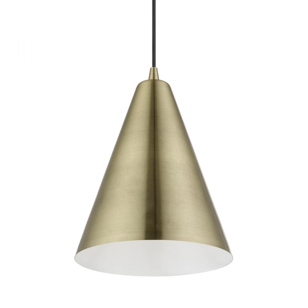 1 Light Bronze Cone Pendant with Antique Brass Accents