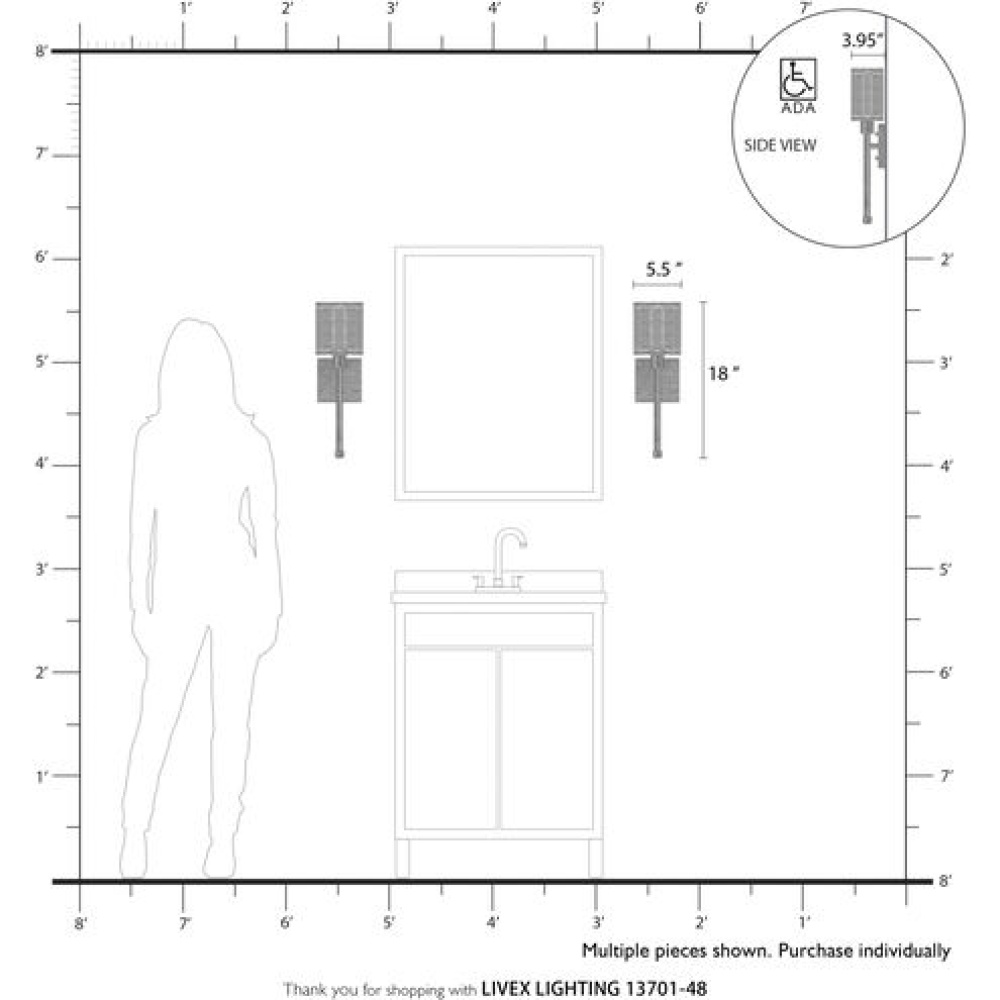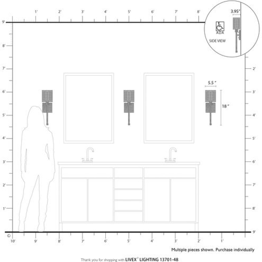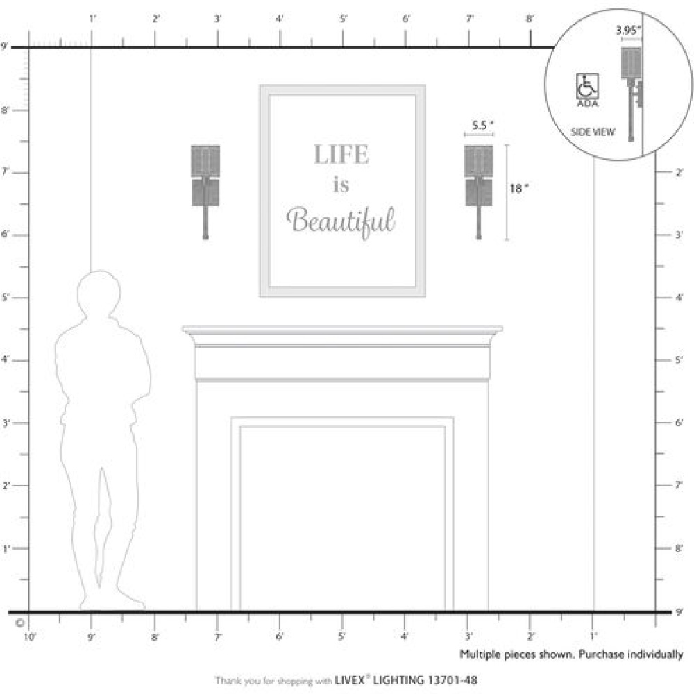 Livex Lighting 13701-48 - 1 Light Antique Gold Leaf Single ADA Sconce