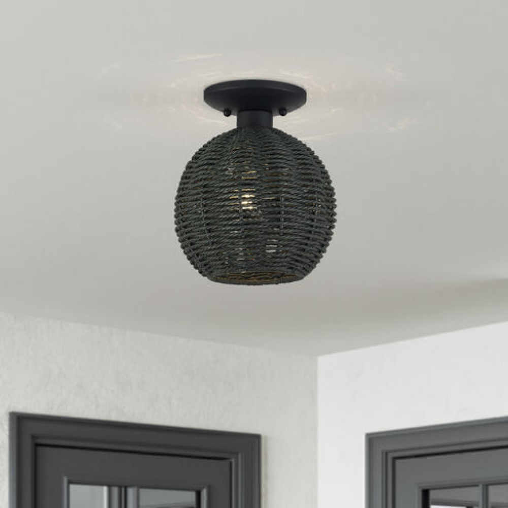 Surrender to one of life’s simplest yet most essential pleasures – soft lighting – with the ambient transitional Deluna lighting collection. This versatile, rustic-inspired design features minimalist metal frames and elegant mandarin-shaped – handwoven with the remarkably durable and water-resistant paper rope material, finished in midnight black. Delivers organic-feeling, gently diffused illumination with atmospheric shadowing.