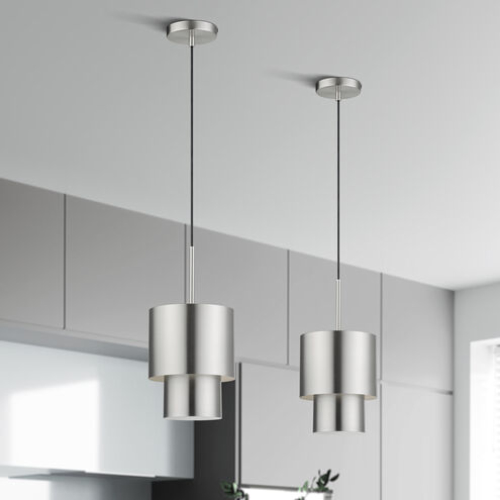With its clean lines, minimalist aesthetic and sleek geometricity, the chic Zolana lighting collection artfully blends modern function with retro nostalgia. This contemporary two-tiered “wedding cake”-style design features slender, barely-there stems and canopies in warm and cool tones supporting elegant, drum-shaped, solid-metal shades lined with light-amplifying colors on the inside – for soft, glare-free indirect and ambient illumination.