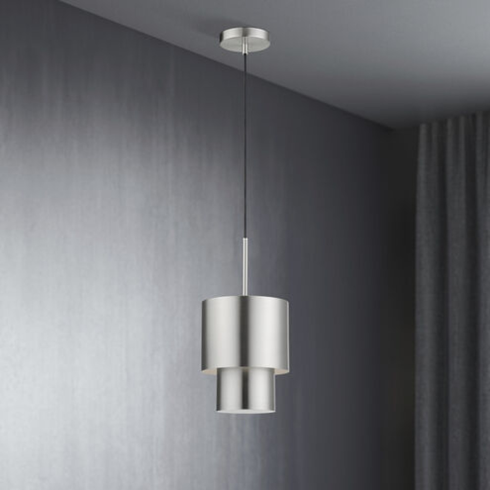 Brushed Nickel Steel Shade with Shiny White Inside
