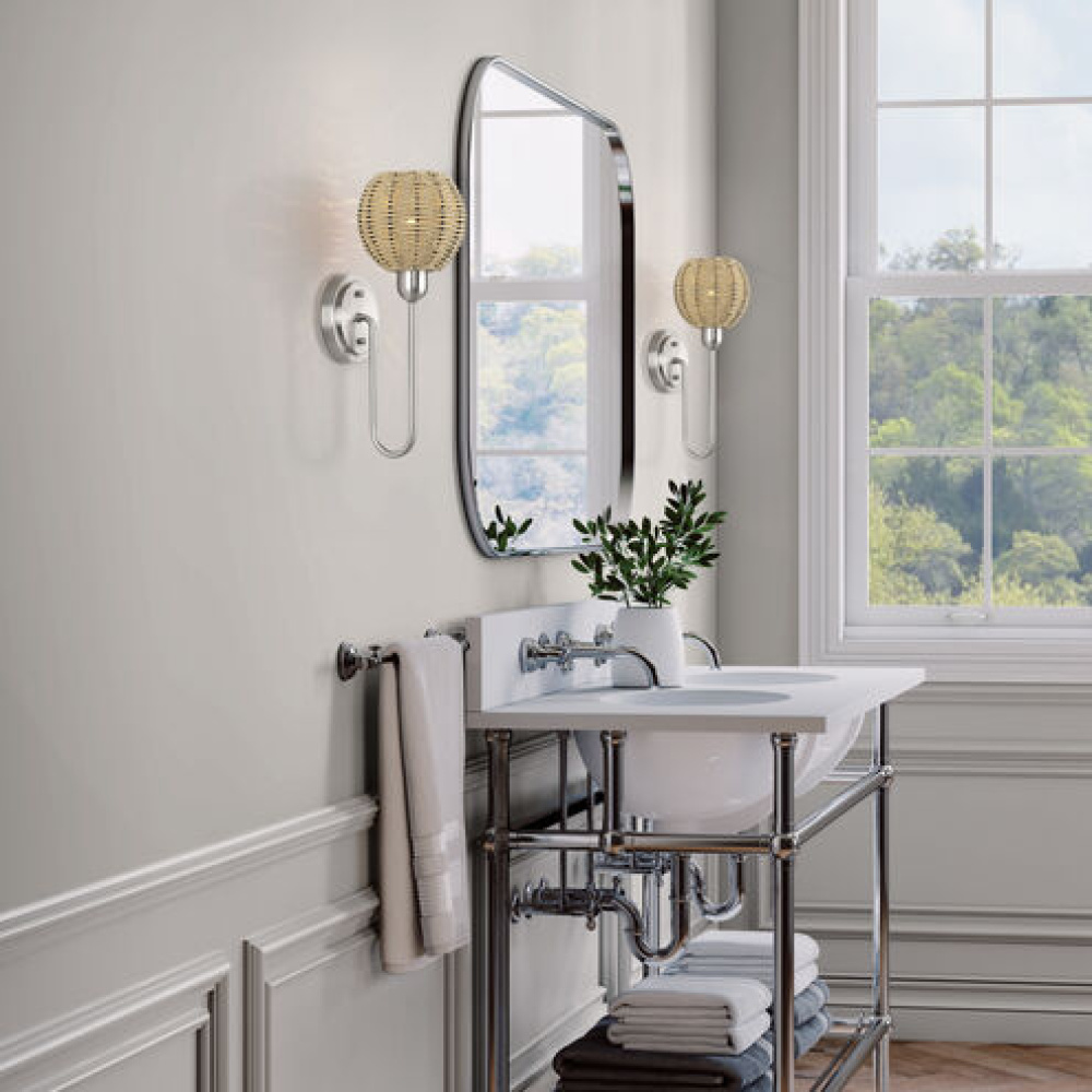 Whatever the season outside, there’s always a laidback beach house atmosphere indoors – with the sunny, transitional Summervine lighting collection. This natural-feeling, versatile ceiling and wall light design features slender, curved metal frames (in attractive metallic finishes) and luminous globe- and ellipsoid-shaped shades – handwoven with the remarkably durable and water-resistant paper rope material, finished in rich French beige.