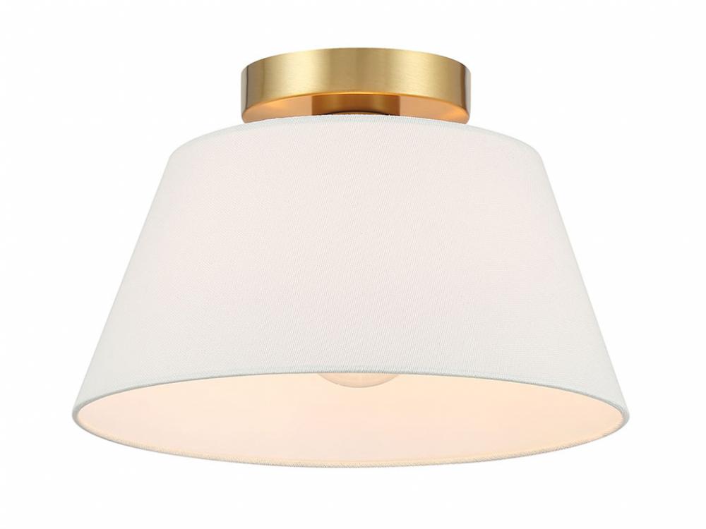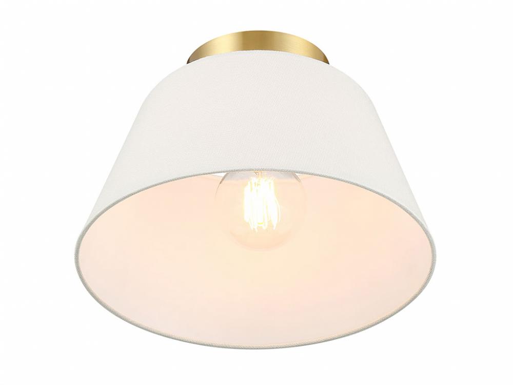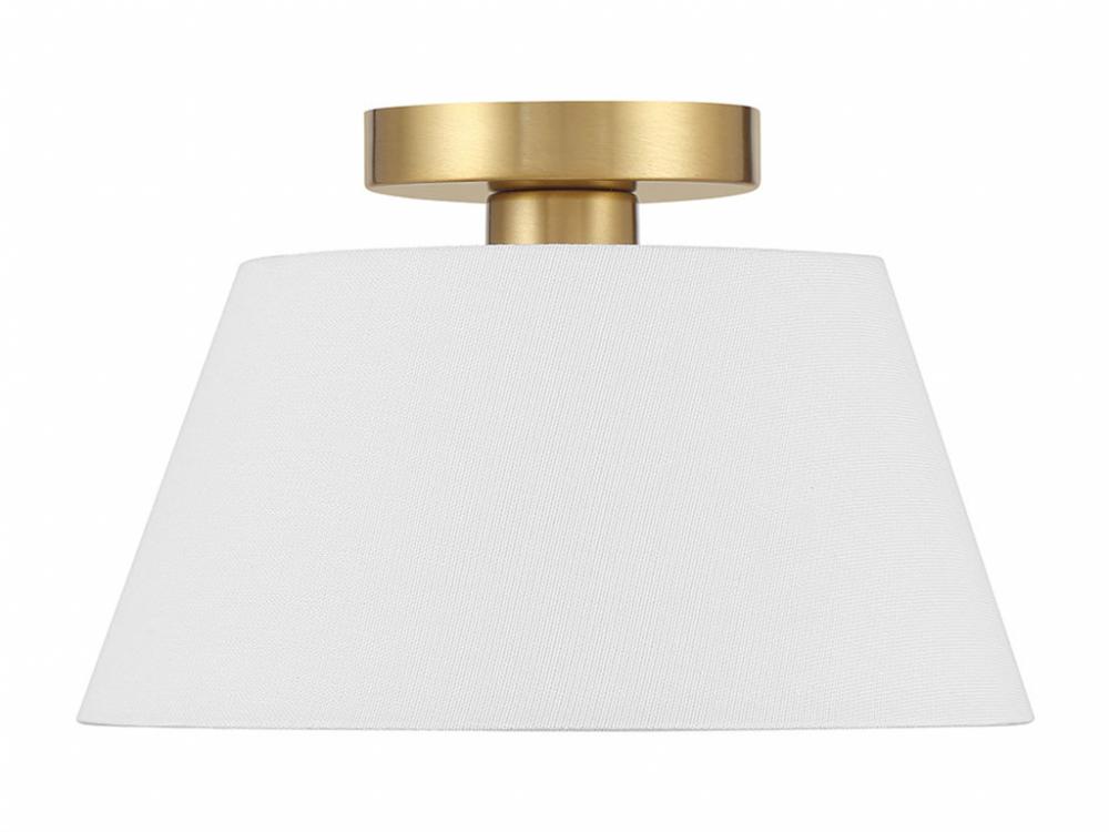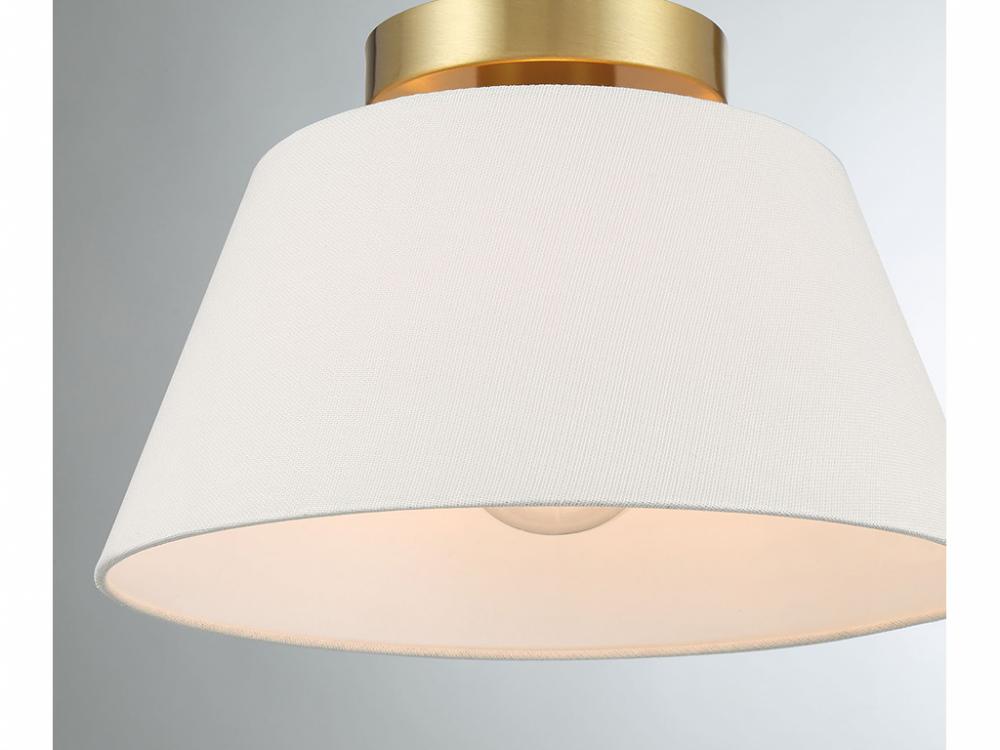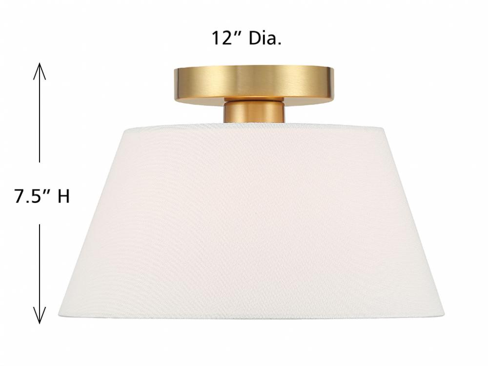 Use this 3-light ceiling semi-flush mount to freshen up any room. The elegant white linen shade provides a crisp and classic look that works beautifully with any decor and style. The Natural Brass finish is wonderfully versatile. 7.5" height, 12" width. Uses 1 standard size bulb of up to 60 watts. Bulb not included.