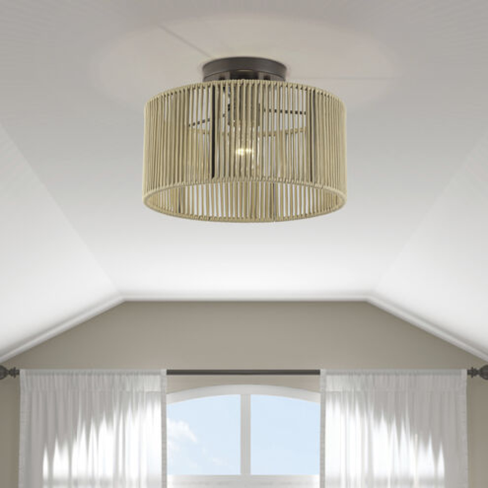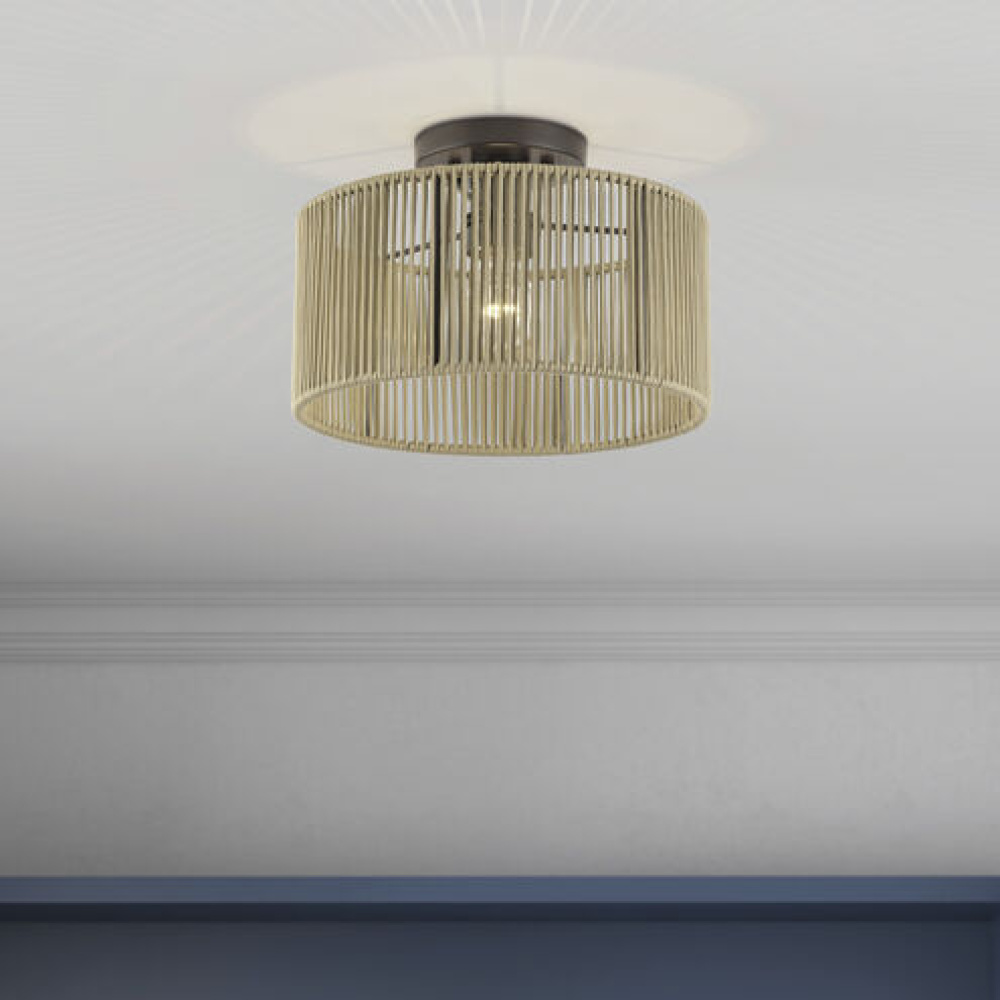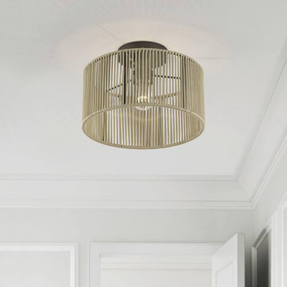 What a joy to come home to the calming, balanced and stylish Acordia lighting collection, with its semi-transparent texture and dynamic illumination! This midcentury modern lineup of elegant ceiling and wall lights features minimal metal frames with dimensional drum-shaped, tiered shades – masterfully handwoven with silky-smooth, highly-durable polyester rope, finished in noble, natural and atmospheric colors.