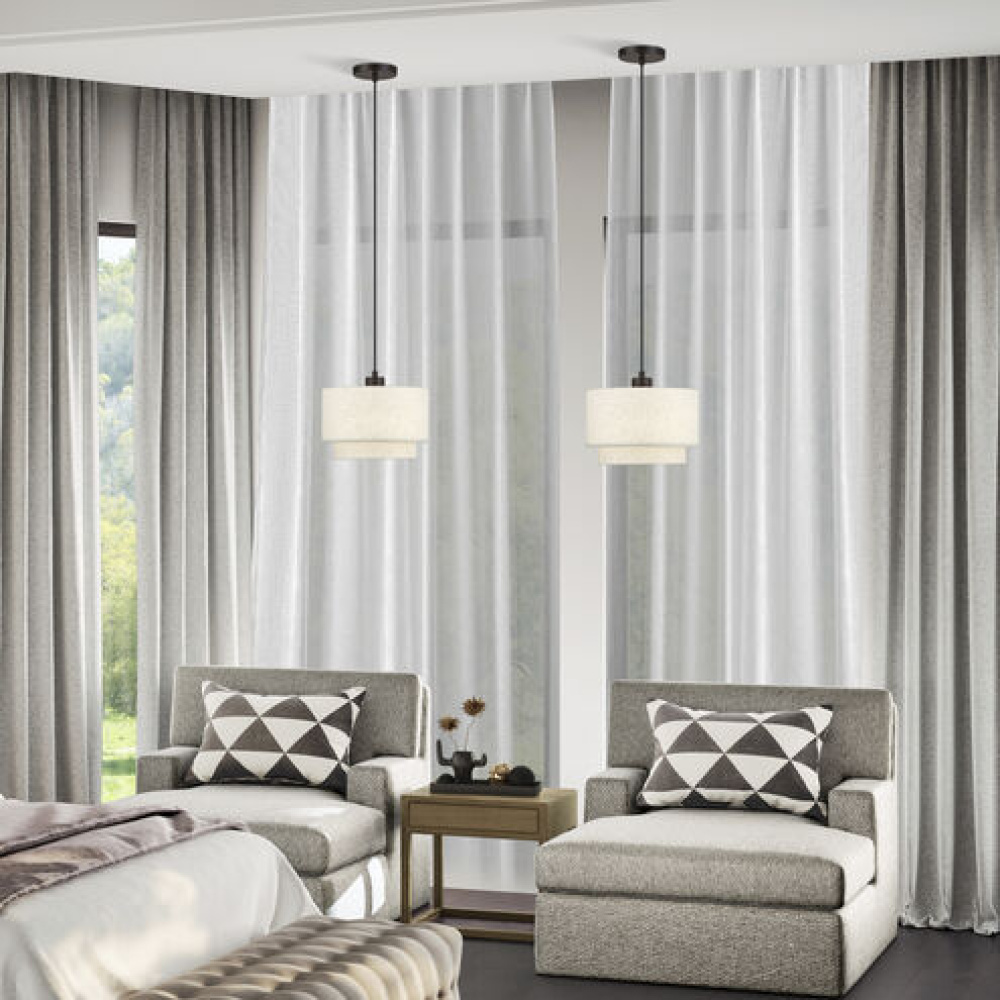 No room is too big or too small for the ambient, modern Manorwood lighting collection, given its extensive line-up of ceiling and wall light models in round and linear styles. Featuring minimalist metal frames (available in several mood-setting metallic finishes), the versatile Manorwood design is centered around handmade hardback shades concentrically stacked in a “wedding cake” style in up to 4 tiers.