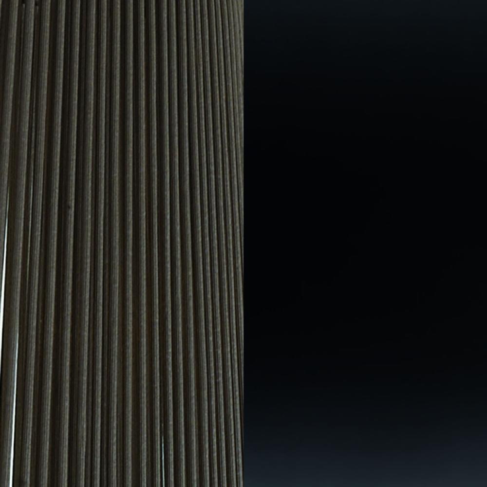FINISH: A mixed material finish of durable hand-wrapped resin in a warm, dark brown, plus neutral, dark, flat black metal.