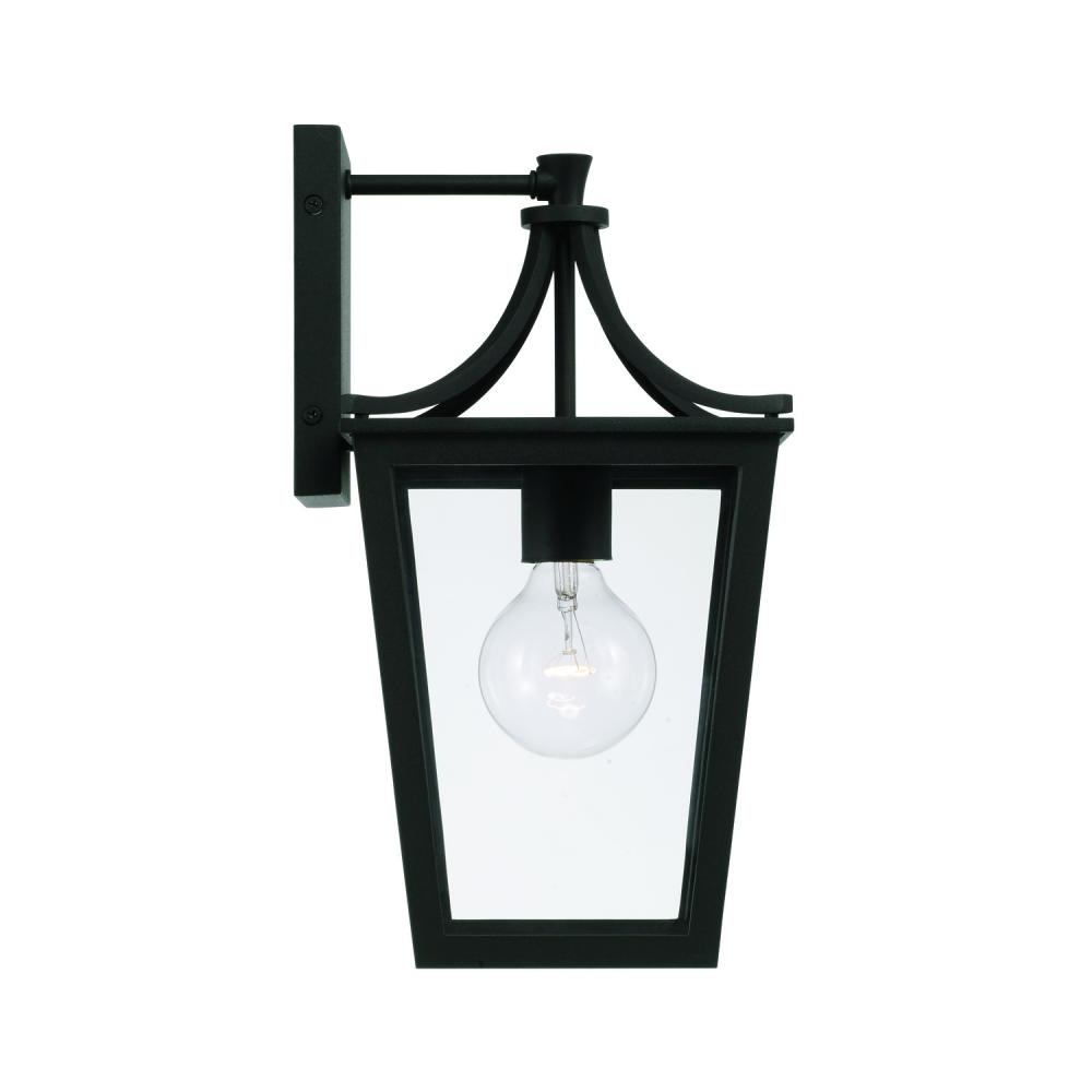 7.5"W x 14.25"H 1-Light Outdoor Wall Lantern in Black with Clear Glass