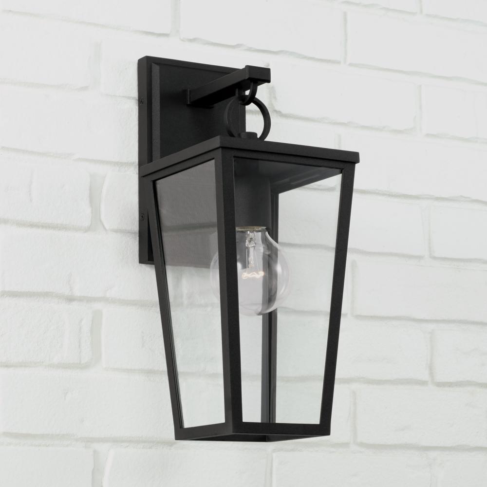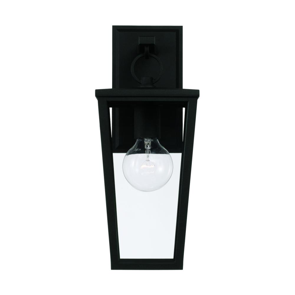 6.25"W x 15.5"H 1-Light Outdoor Wall Lantern in Black with Clear Glass Panels