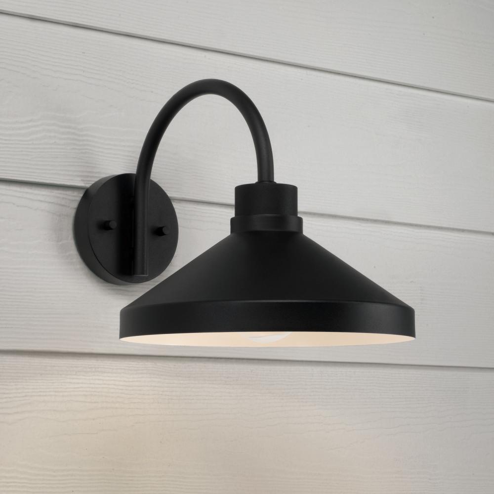 A fresh take on the classic barn light, the Lofton Wall Lantern delivers simple style with a distinct aesthetic. The white interior paired with the Black finish brings a clean, contemporary look, while the curved arm adds visual balance. Part of our Rain or Shine Series and backed by our five-year warranty.