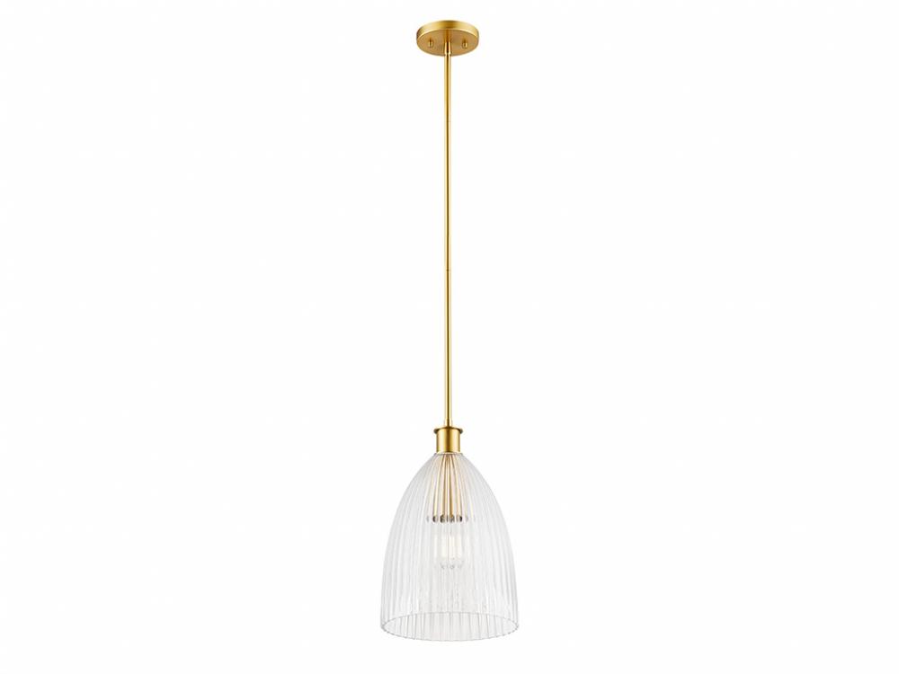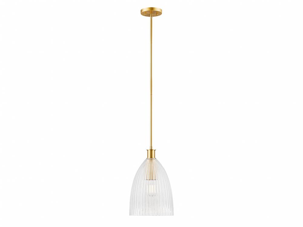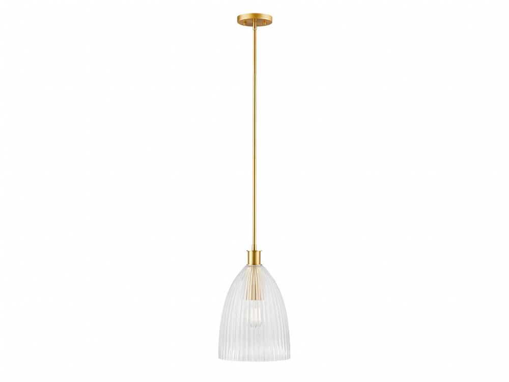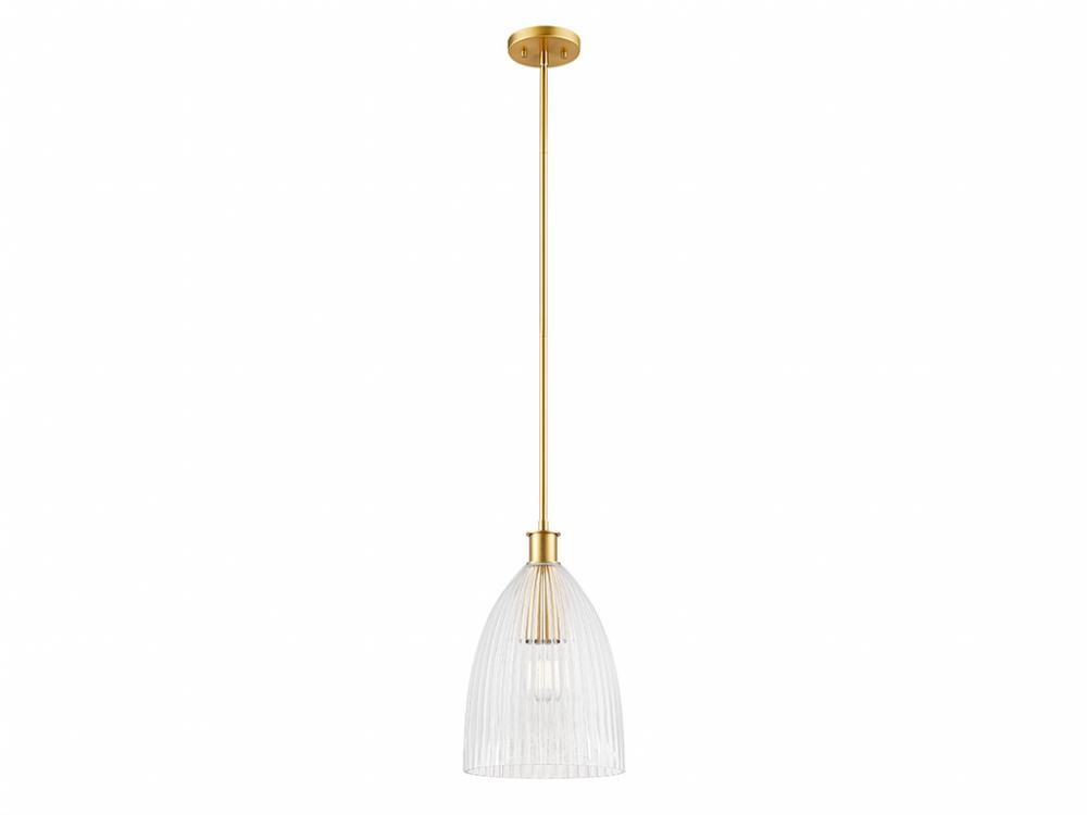 Create beautiful illumination with this 1-light pendant! Its ribbed glass shade brings in a big dose of textural intrigue and its Natural Brass finish adds richness. This pendant is 15.5" in height and 10" in width. It uses one standard size bulb of up to 60 watts. Bulb not included.