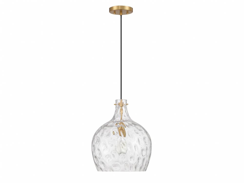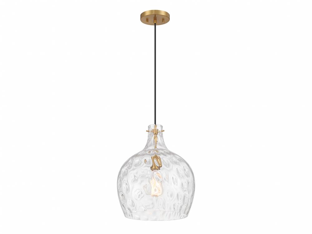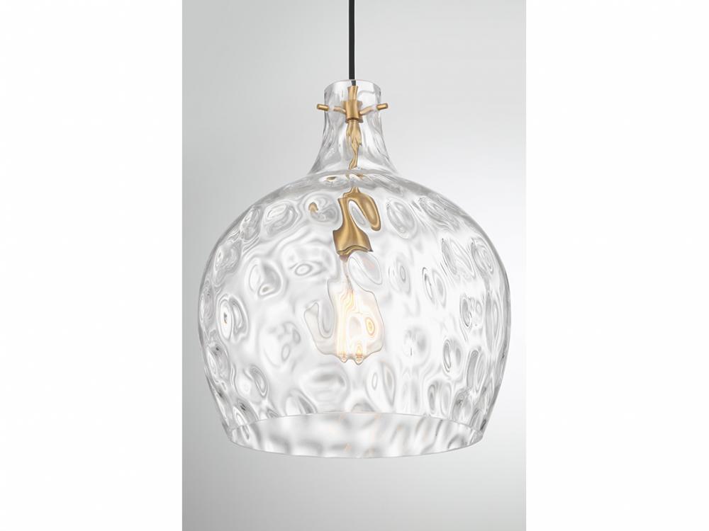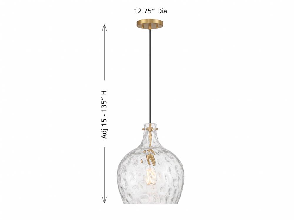 Amplify the look of any space with this beautiful 1-light pendant! It features a shade of highly textured hammered glass that takes center stage, held on a sleek black hanging cord and accentuated by hardware in a Natural Brass finish. This pendant is 12.75" in width and has an adjustable height ranging from 15" to 135". Uses 1 standard size bulb of up to 60 watts. Bulb not included.