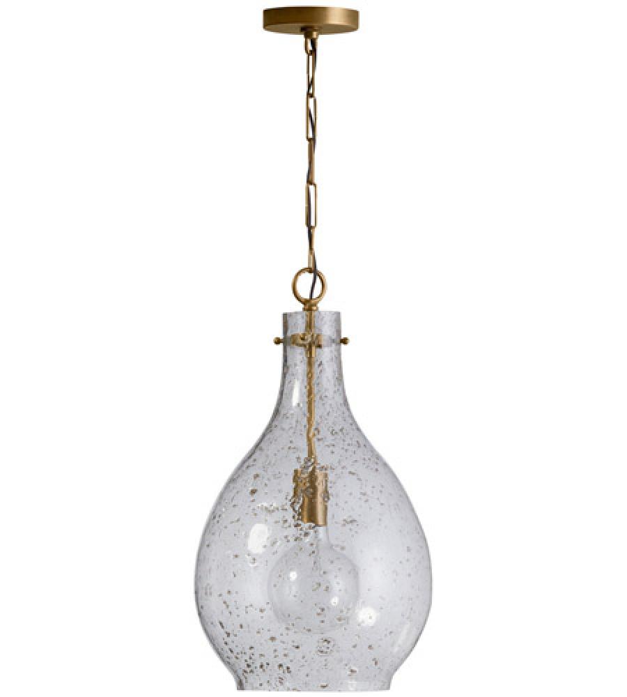 1 light pendant with Patinaed Brass finish and Stone Seeded glass.