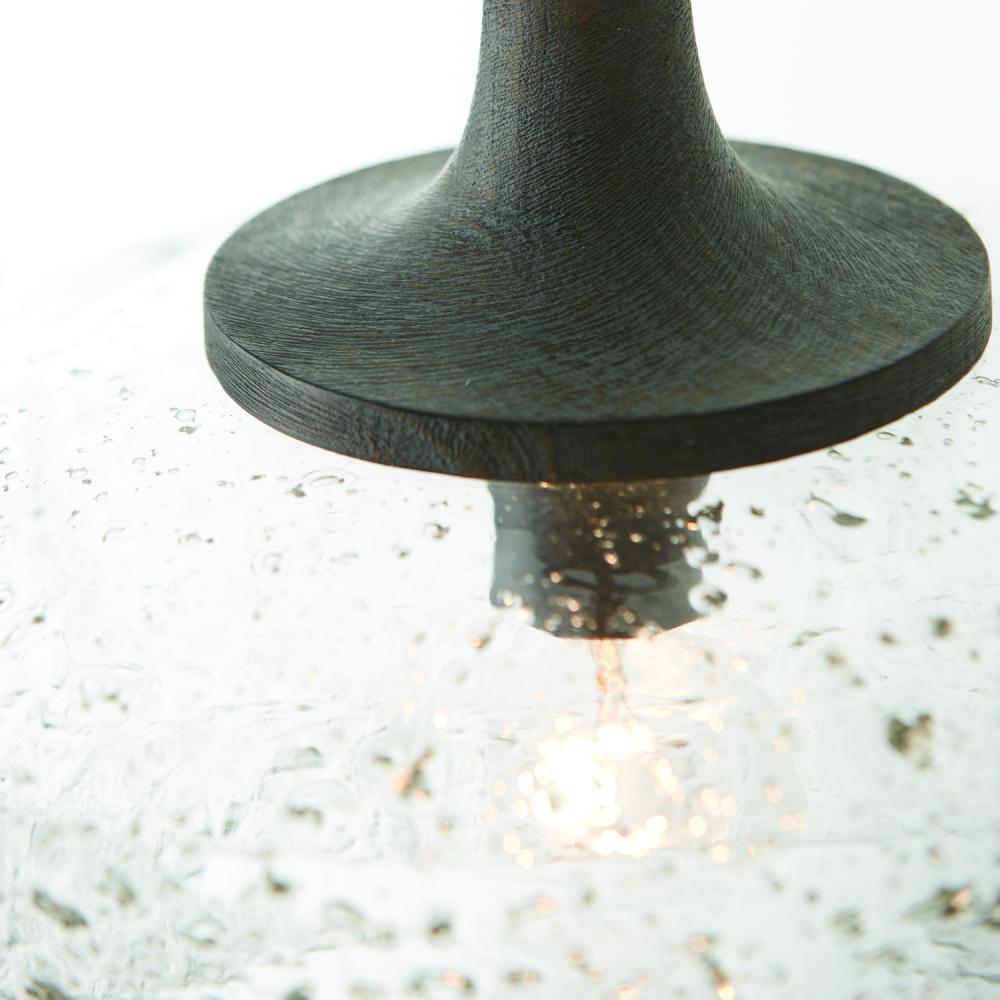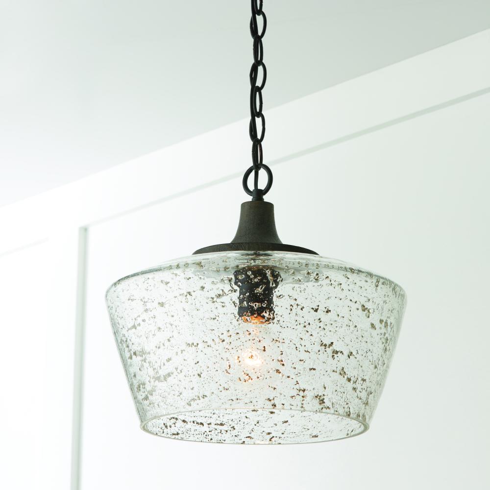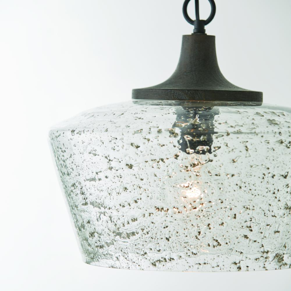14"W x 12.5"H 1-Light Pendant in Carbon Grey Wood and Black Iron with Stone Seeded Glass
