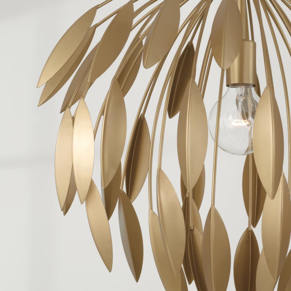 Invite glamour to any space with the Margeaux Medium Pendant. Layers of cascading leaves create decadent dimension, while the Buffed Gold finish evokes a subtle shimmer from every angle.