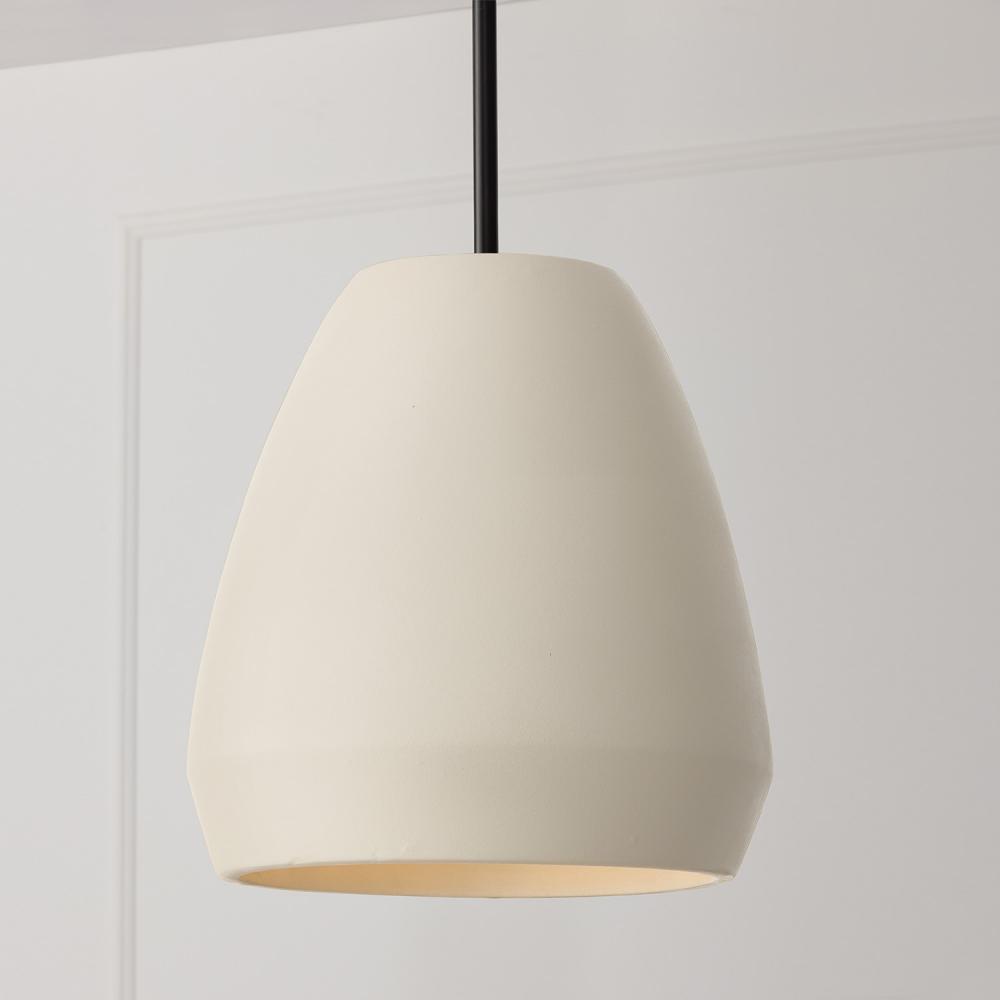 Handcrafted of terracotta, the Della Large Pendant delivers organic appeal with natural character — no two pieces are quite the same. Inspired by earth tones and painted by hand, the soft Ivory finish brings a light aesthetic to the sculpted silhouette, grounded with Matte Black metal details.