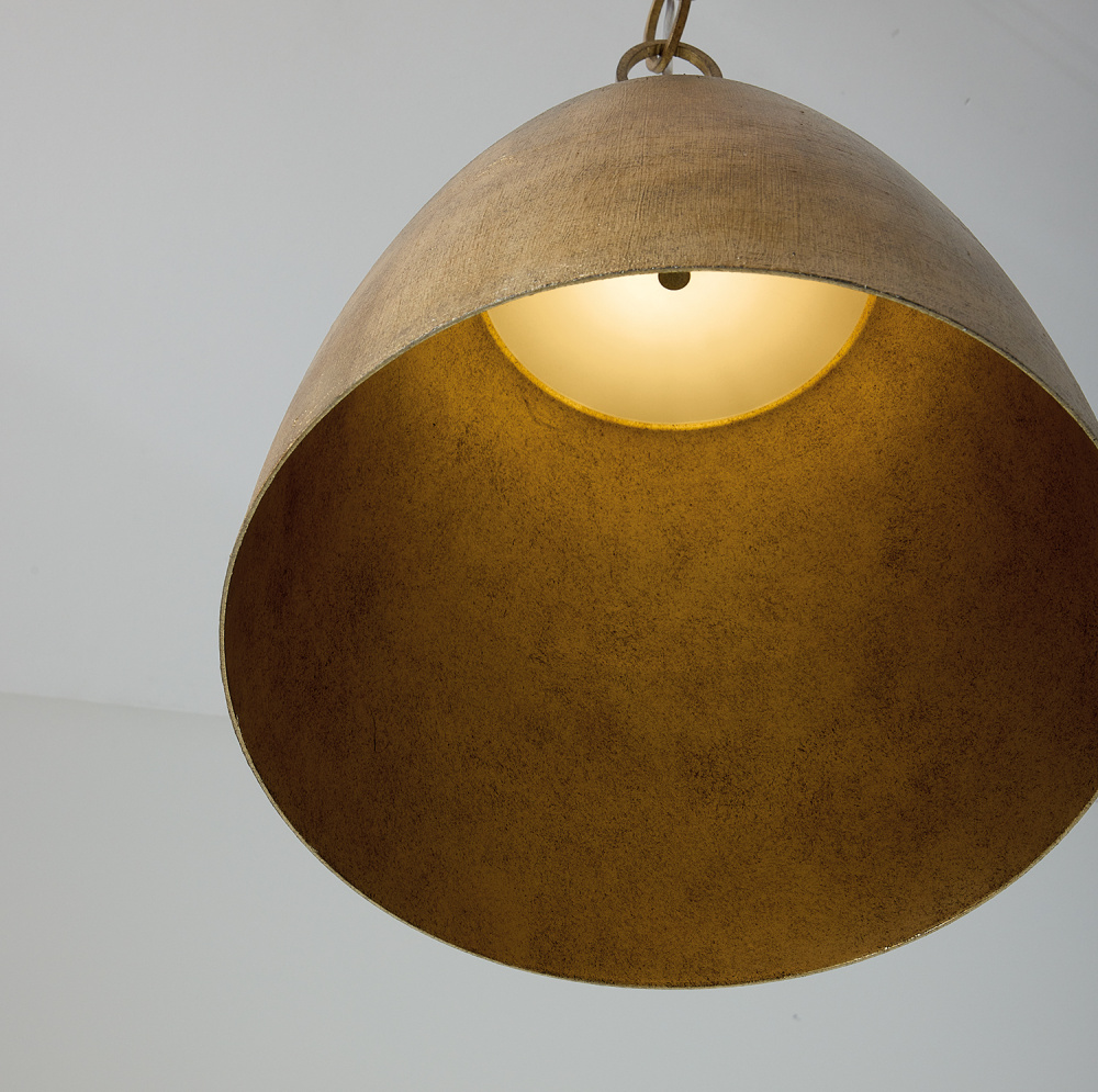 Sophisticated in silhouette and shine, the Francesca Small Pendant brings high design and integrated LED technology. Soft curves form the unique designer dome, while the handcrafted Feathered Brass finish creates a luscious visual and tactile texture that beautifully catches the light from all angles. Complete with color changing technology — choose from three hues: 3000, 4000, or 5000 Kelvin.