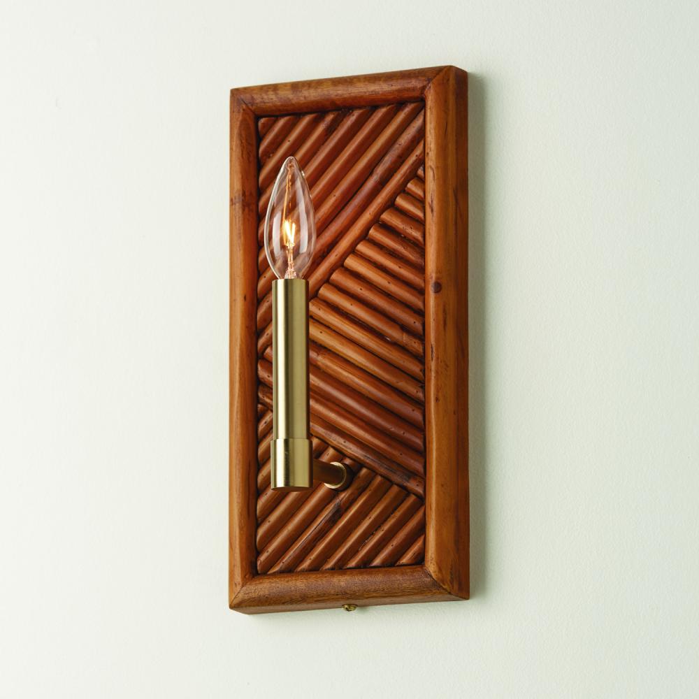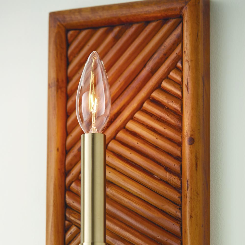 6"W x 13"H 1-Light Sconce in Matte Brass with Patterned Natural Bamboo Backplate