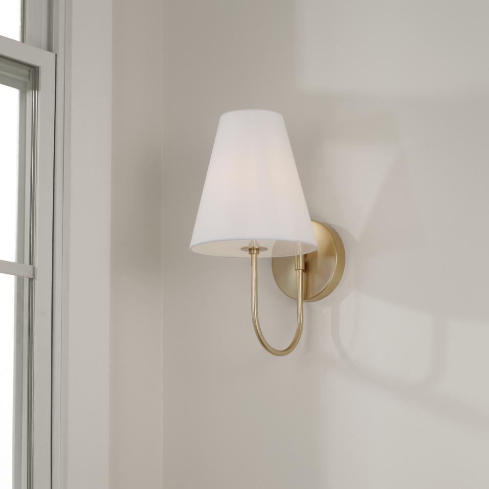 Sophisticated curves create chic style in the Julia Sconce. The Matte Brass finish adds a subtle shimmer to the sleek, arched arm, perfectly complementing the crisp, tapered white shade complete with a glass diffuser for a fresh take on transitional look.