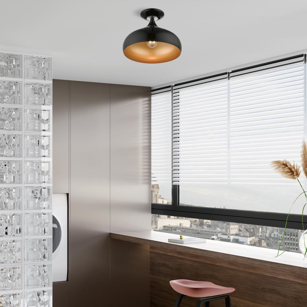 1 Light Shiny Black Semi-Flush Mount