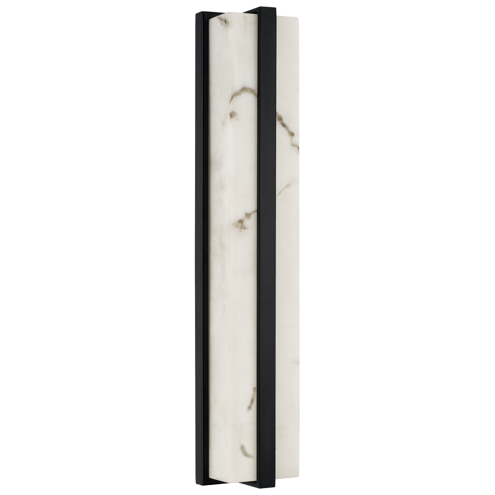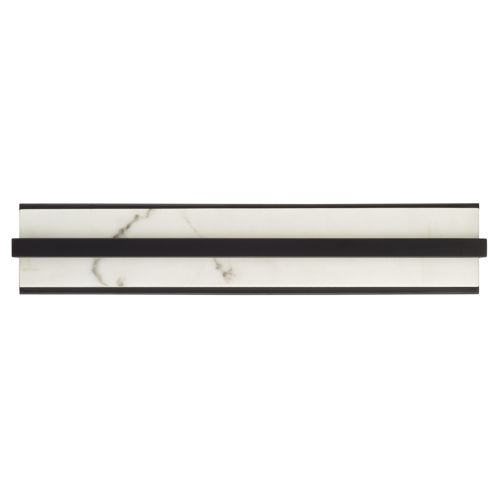 The Noah Vanity exudes streamlined sophistication in a sleek, rectangular form. The hand-crafted Alabaster composed Glass pairs with an integrated LED board to create this handsome luminaire. With maximum impact that meets ADA standards, the fixture includes a full-length Matte Black backplate and a matching strike-through band across the front.