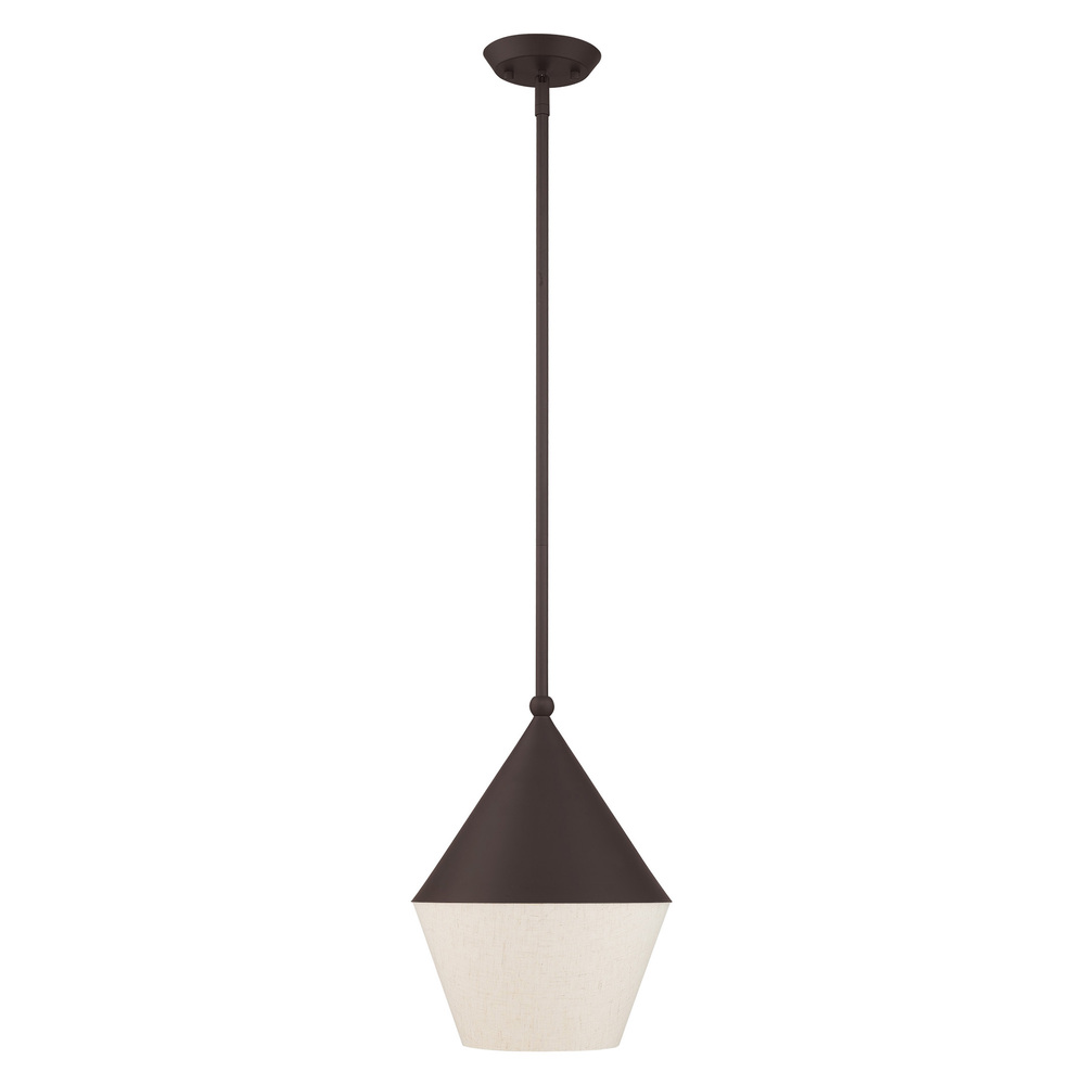 The Unique Design Of The Stockholm Mini Pendant Merges Different Materials To Create A Truly Eye-Catching Fixture. The Bronze Body Is Accented By A Hand Crafted Oatmeal Hardback Shade Around The Bottom Creating A Distinct Mid Century Modern Look.