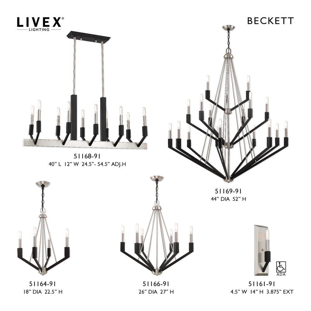 Livex Lighting 51161-91 - 1 Lt Brushed Nickel & Black ADA Wall Sconce