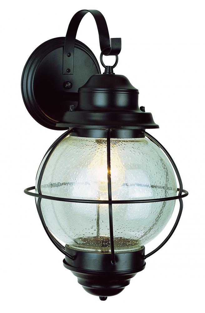 The Catalina Collection combines nautical design themes with functionality. The Catalina 15" Wall Lantern offers both accent lighting and supplemental area lighting as it stands out and showcases the outdoor decor. A round clear Seeded glass shade embodies classic styling of nautical lighting. The ring-hook, round wall plate, and metal piping are all details accenting this quality outdoor wall lantern.