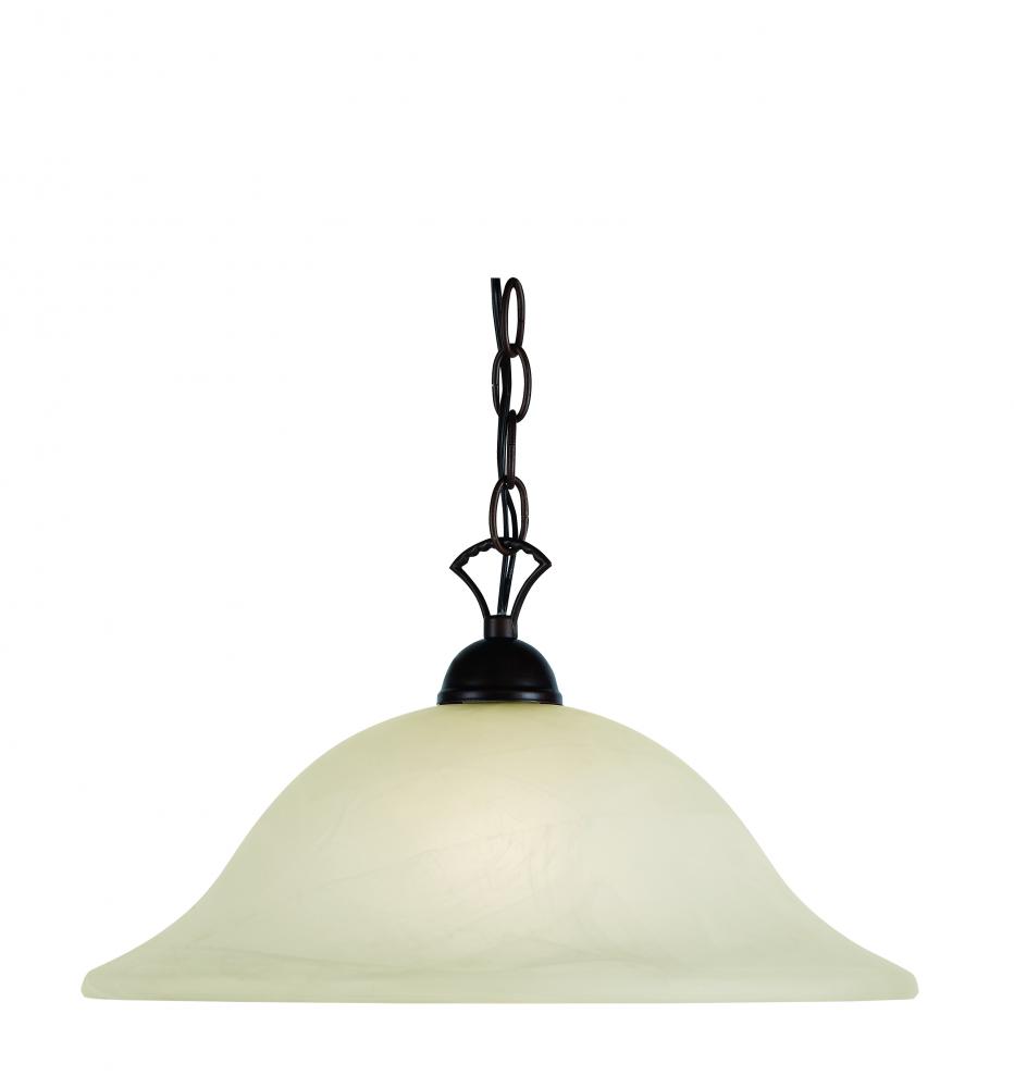 The Aspen 16" Pendant indoor fixture provides abundant light to your home's interior, while adding style and interest. Transform your living spaces with this Transitional fixture that enhances a variety of interior design themes. The classic bell-shaped Marbleized Glass shade holds a single down-light. A chain for hanging is included which is attached to a decorative hook on top of the shade. The Aspen Collection features a diverse offering of coordinating fixtures to use throughout your home’s interior.