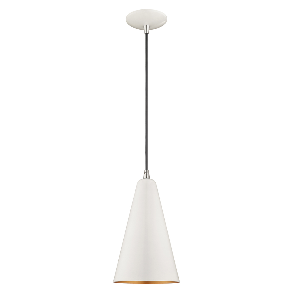 Livex Lighting 41492-69 - 1 Light Shiny White Cone Pendant with Polished Chrome Accents