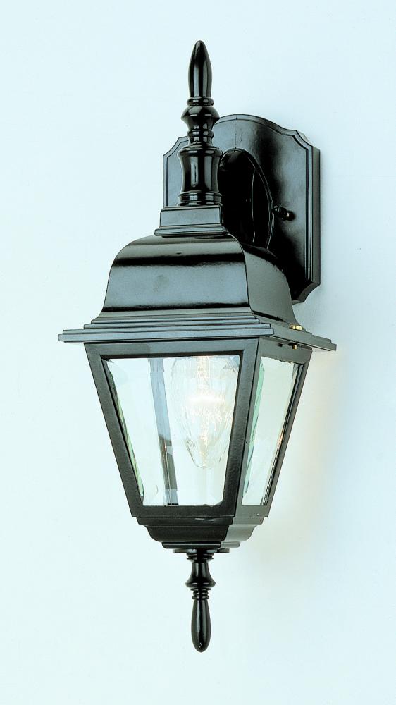 The Argyle 16.75" Wall Lantern showcases any outdoor living space with both style and functionality. The durable craftsmanship is inspired by Colonial design themes and maintains a distinctive look as it provides accent and area lighting. This single light fixture is part of the Argyle Collection, has a top and bottom finial, and is a hexagon shape. Included is a decorative wall plate with matching hardware to hold and highlight this classic, suspended outdoor fixture. The Argyle Collection has multiple finishes to choose from, each a complement to the Clear Beveled glass sides.