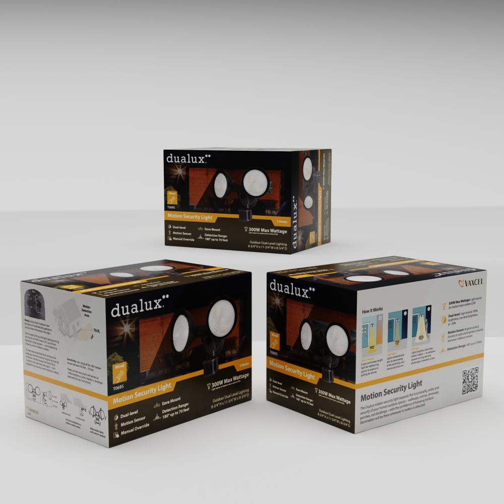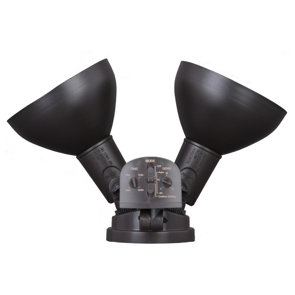 This 2-light outdoor motion sensor security light provides low-level approximately 30% ambient lighting throughout the night and bright 100% high level when motion is detected. The light heads and sensor are fully adjustable to keep your home’s exterior brighter at dusk, dimmer at night, and instantly bright when motion is detected. Customize your lighting options with 5 modes of operation plus adjustable motion sensor sensitivity. Suitable for wall or eave mounting with a wide detection area of 180 degrees and 70 feet. This Dualux security flood light expands the functionality, safety, and security of your home’s outdoor spaces with bright, reliable light when and where it is needed most.