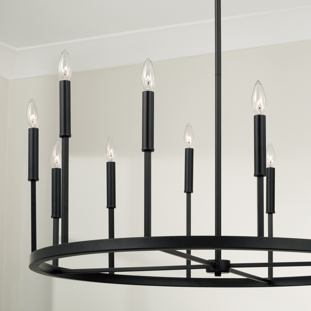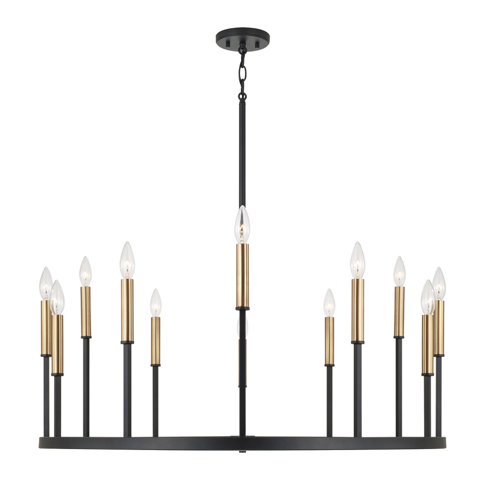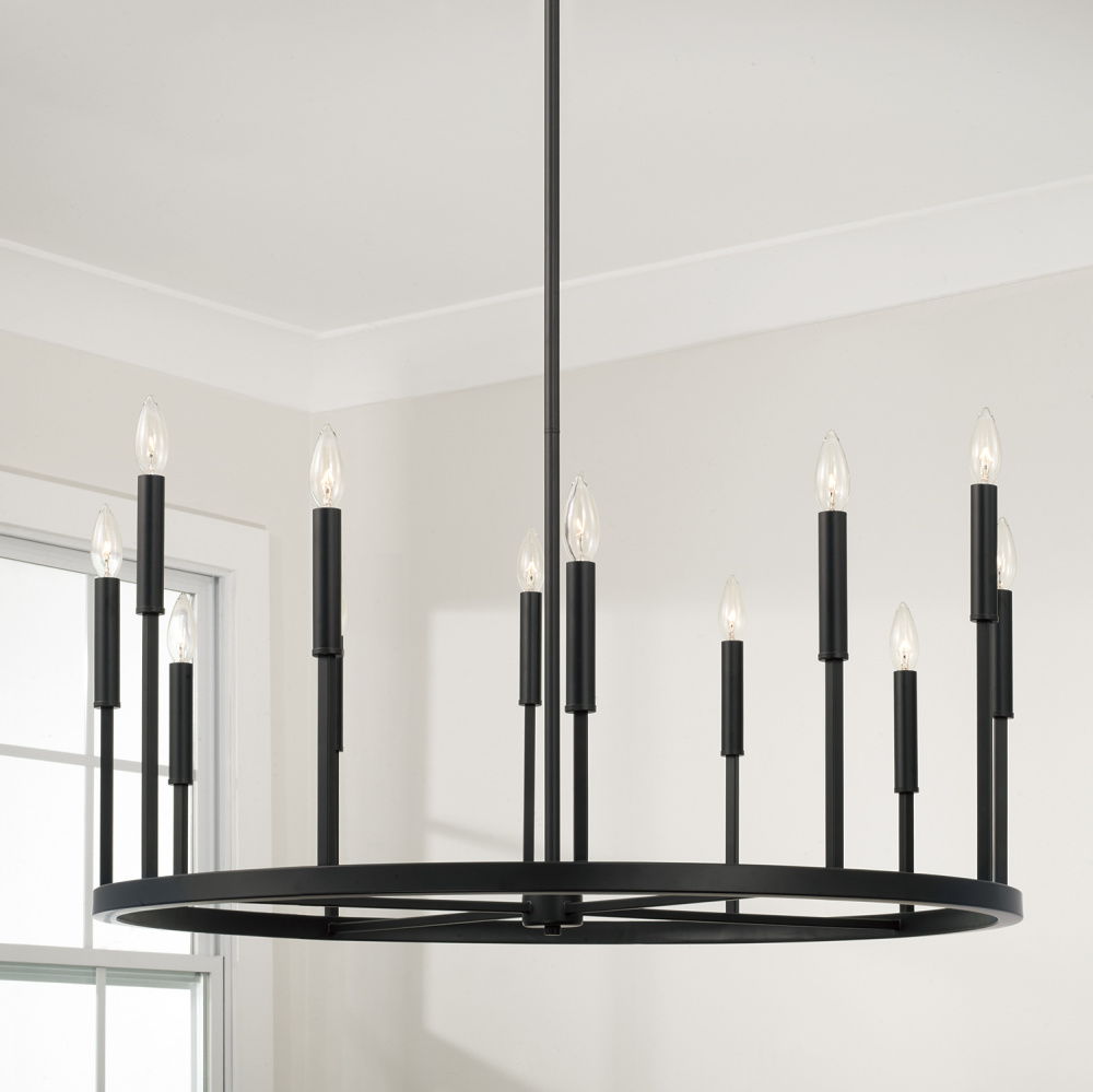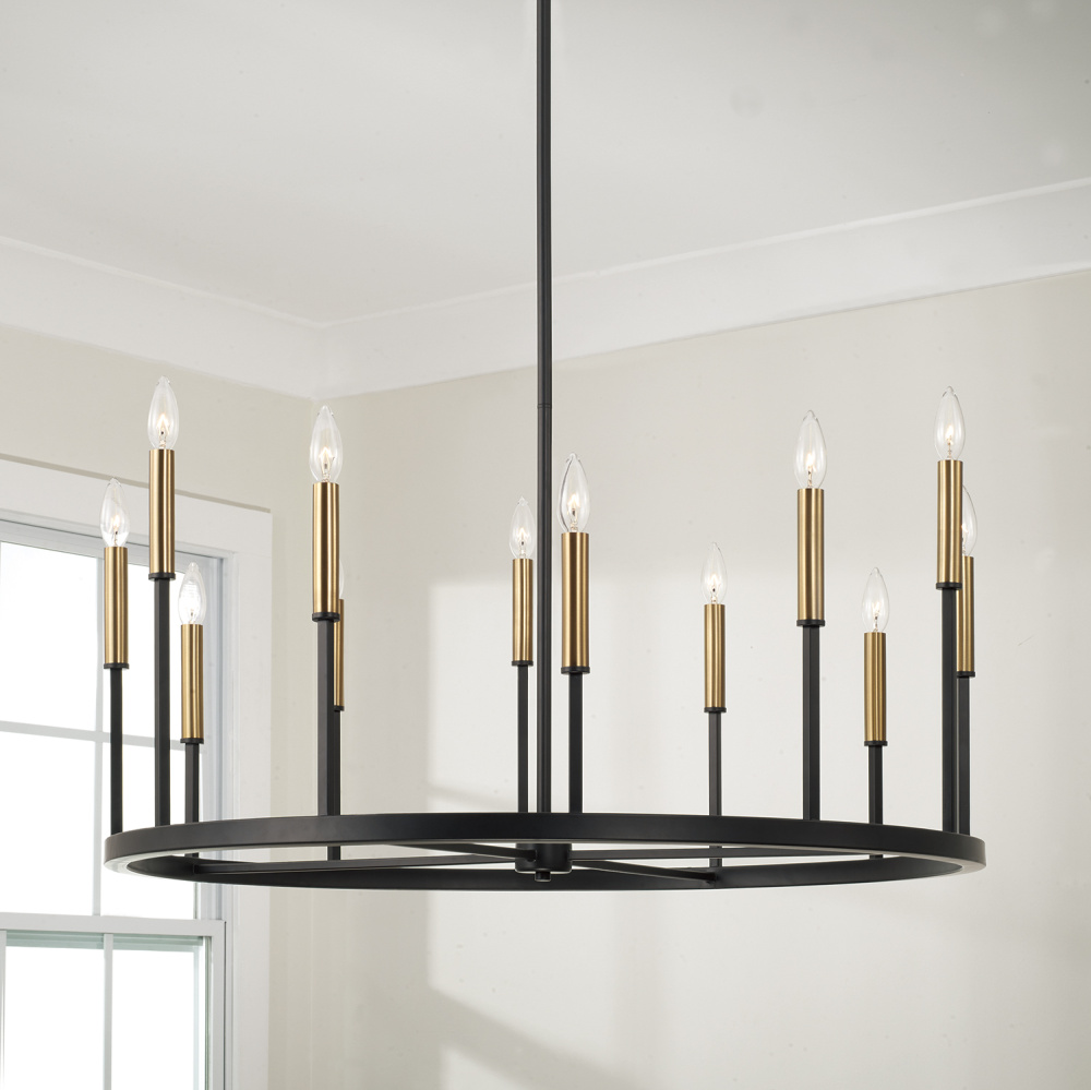 Grounded in a dark Espresso finish, the Davis 36 inch Large Chandelier creates handsome, tailored style with clean lines and a classic ring silhouette. The cylindrical candle sleeves are easy to swap with both Espresso and Brass options included for a two-tone or monochrome look.