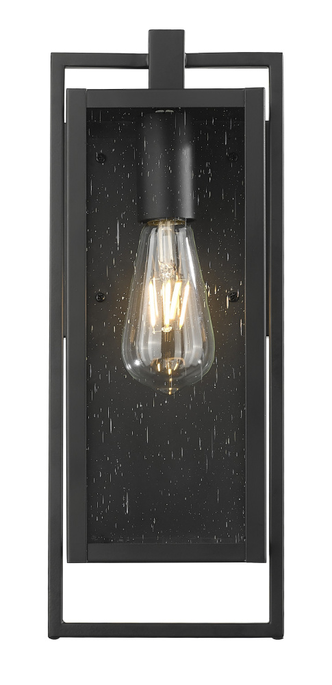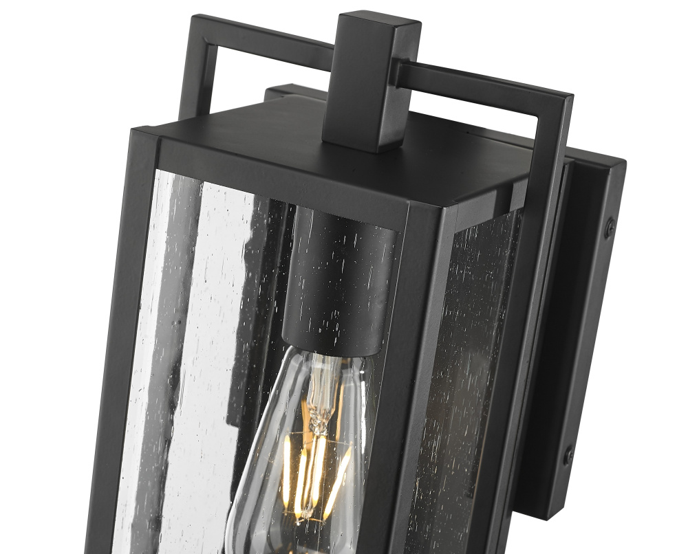 From Acclaim Lighting, this outdoor wall light fixture offers a stylized modern look for your home. It comes in a black finish steel frame, with clean, straight lines and intersecting rectangles that form an eye-catching silhouette. Clear glass panels give a full view of the bulb used within, making decorative light bulbs a smart choice for this fixture.