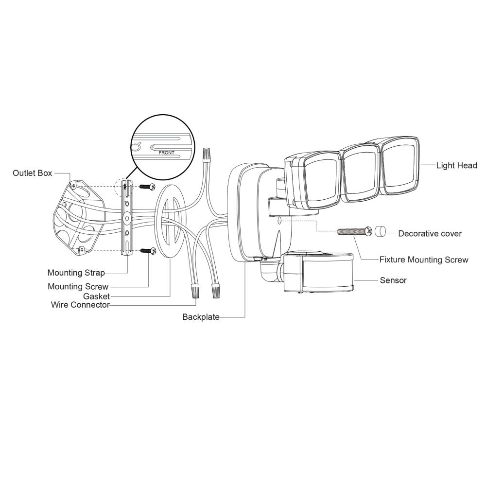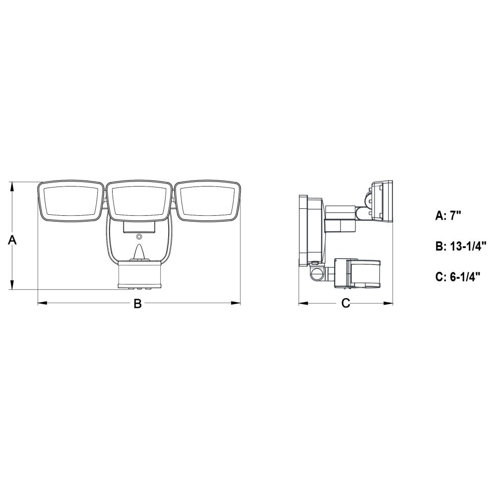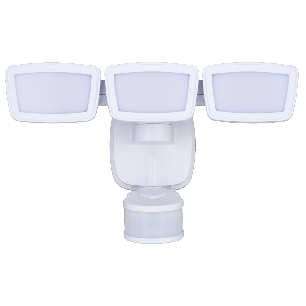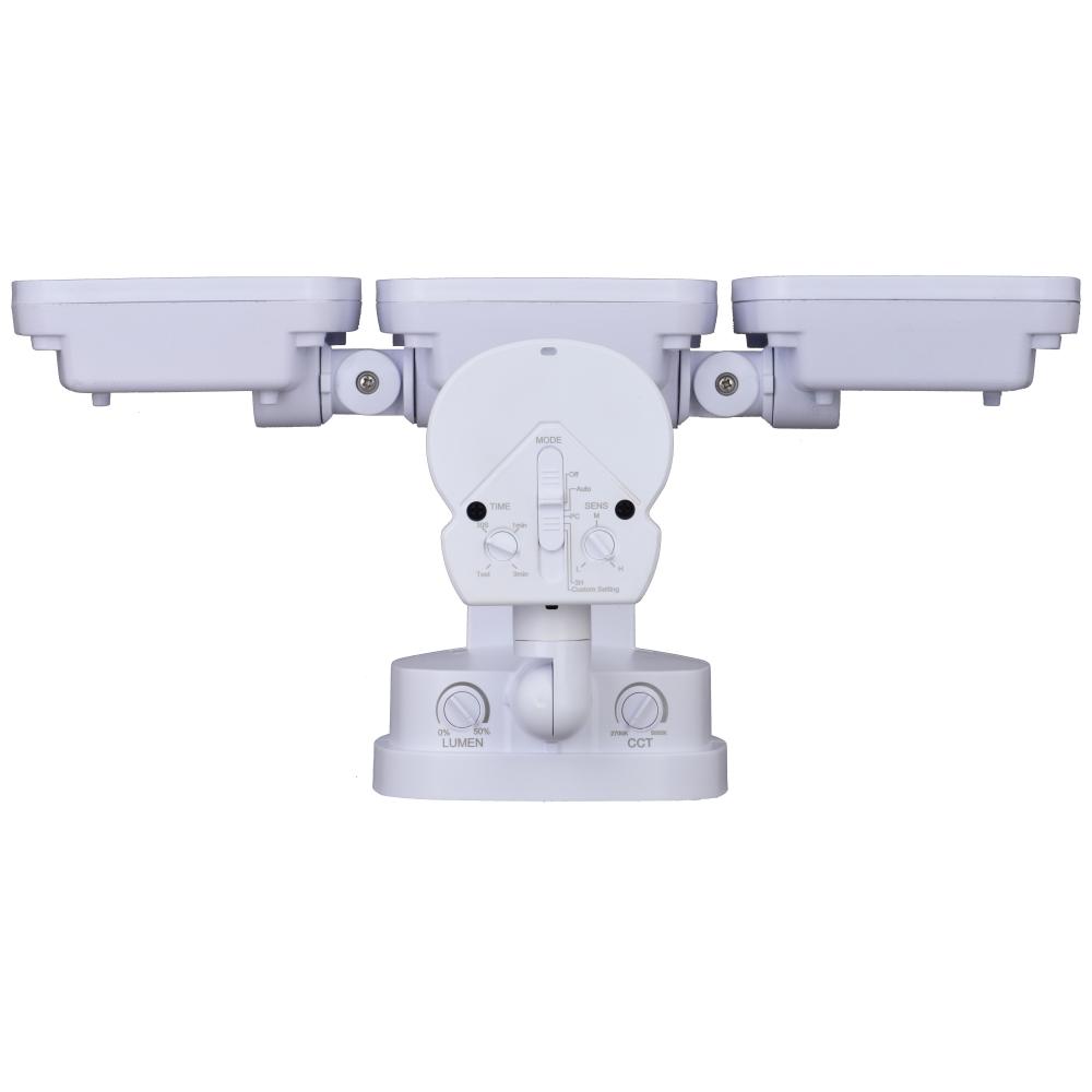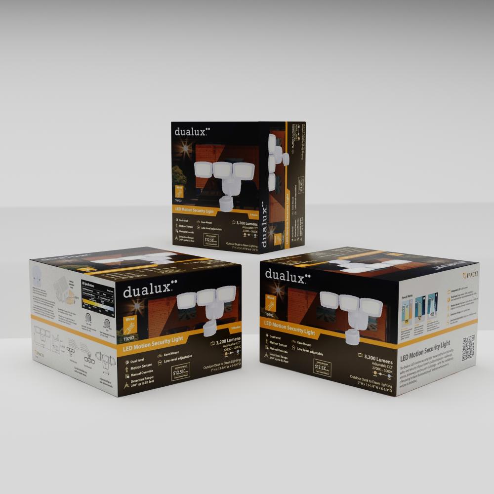 This 3-light integrated LED outdoor motion sensor security light ambient lighting that is adjustable both in CCT 2700K-5000K and brightness 0-50% throughout the night and 100% bright at 5000K high level when motion is detected. The light heads and sensor are fully adjustable and deliver 3200 lumens to keep your home’s exterior brighter at dusk, dimmer at night, and instantly bright when motion is detected. Customize your lighting options with 5 modes of operation plus adjustable motion sensor sensitivity. Suitable for wall or eave mounting with a wide detection area of 240 degrees and 85 feet. This Dualux security flood light expands the functionality, safety, and security of your home’s outdoor spaces with bright, reliable light when and where it’s needed.