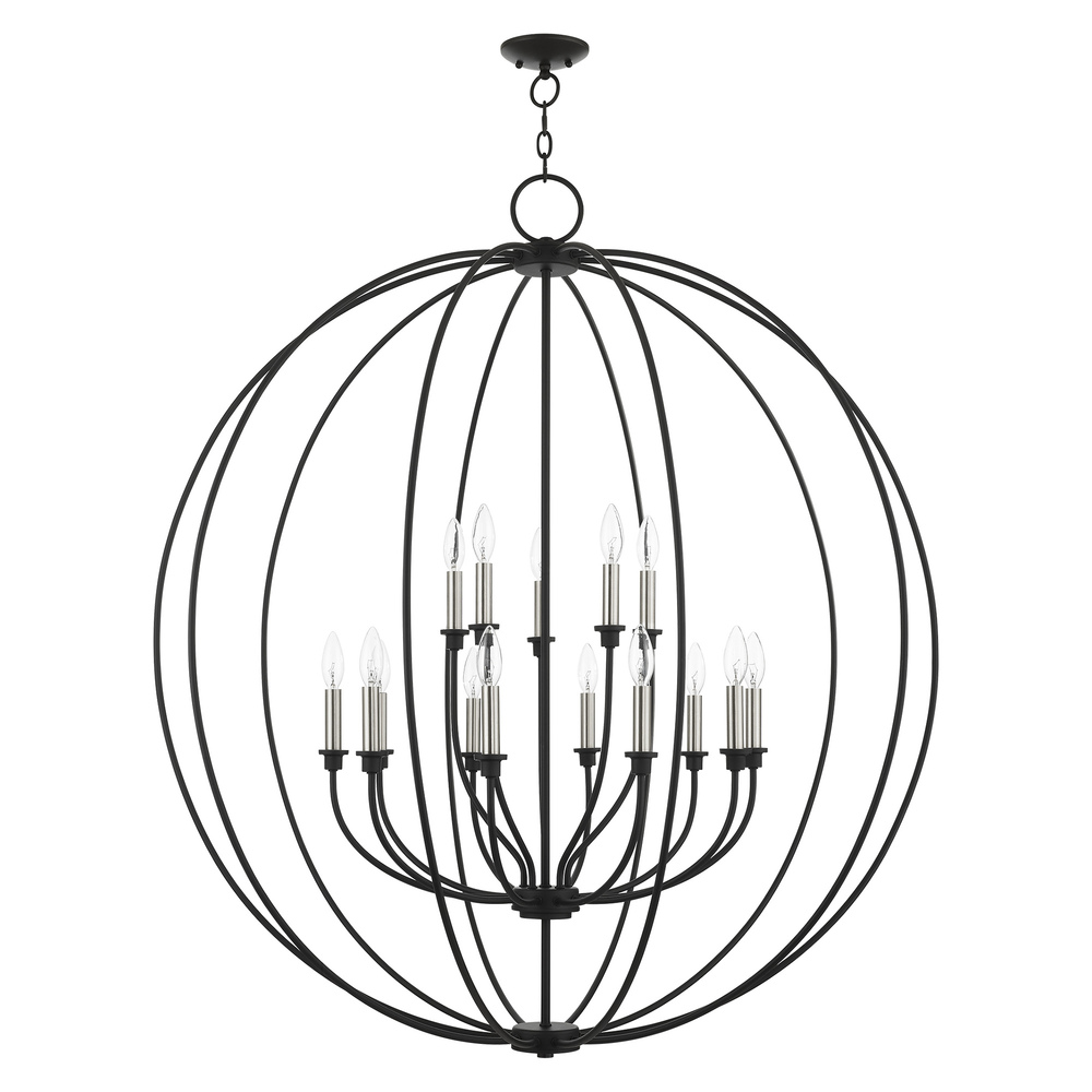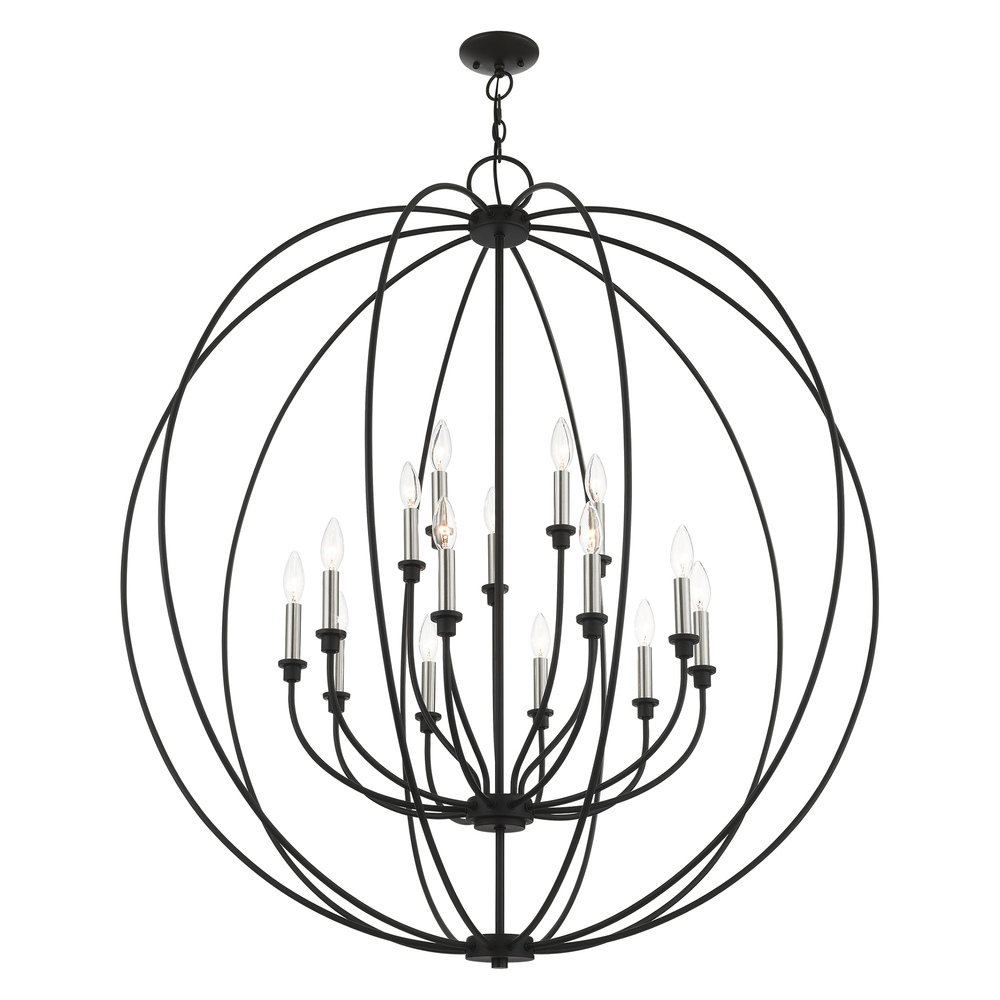 19 Light Black Globe Grande Foyer Chandelier with Brushed Nickel Accents