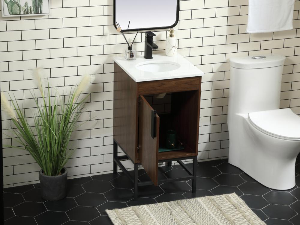 This vanity is a sleek-looking piece of bathroom furniture that is easy to incorporate into your design scheme. The cabinet features a smooth door panel with an oversized steel handle and soft close hinges provide ample room for accessories. Constructed of engineered wood, the powder-coated metal rod legs are an urban industrial look that we love. Minor assembly of the metal legs needed to get this vanity up and running.