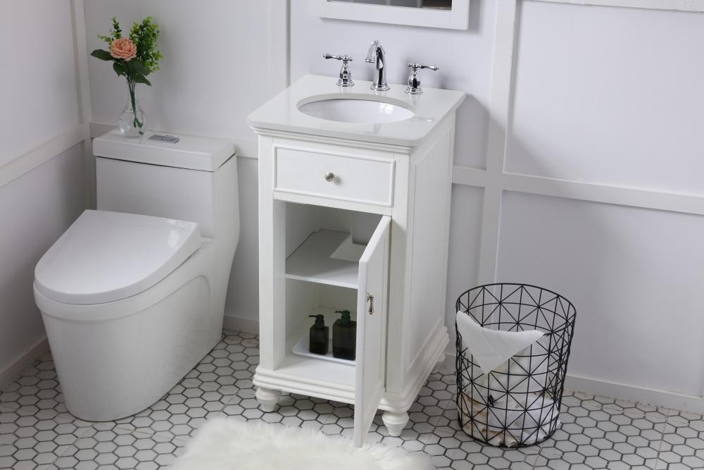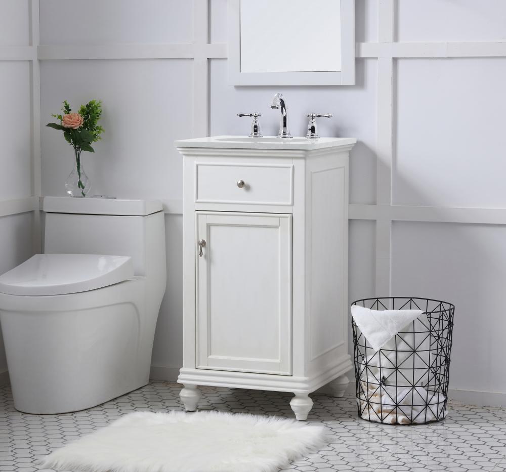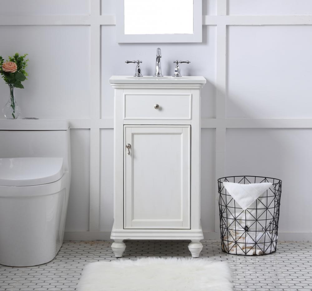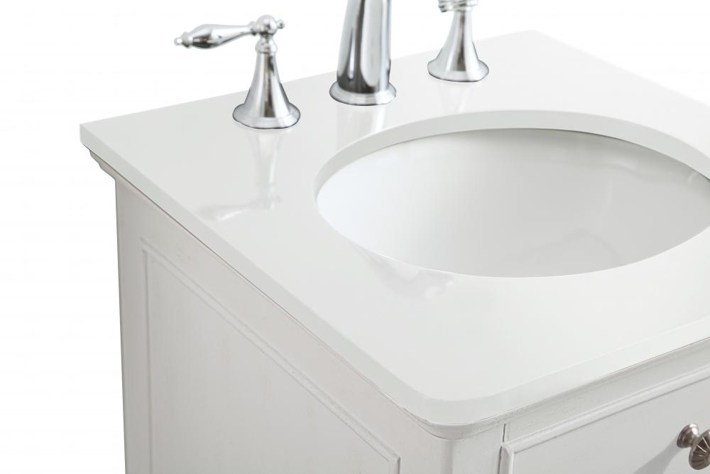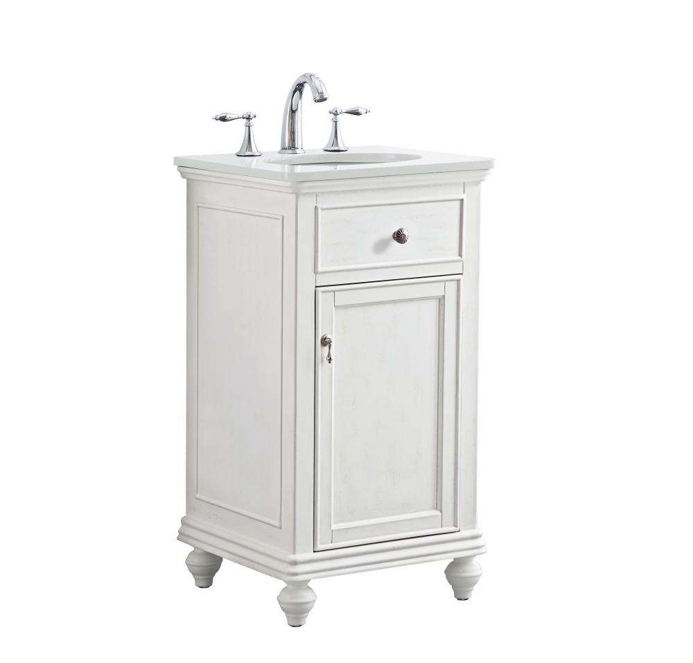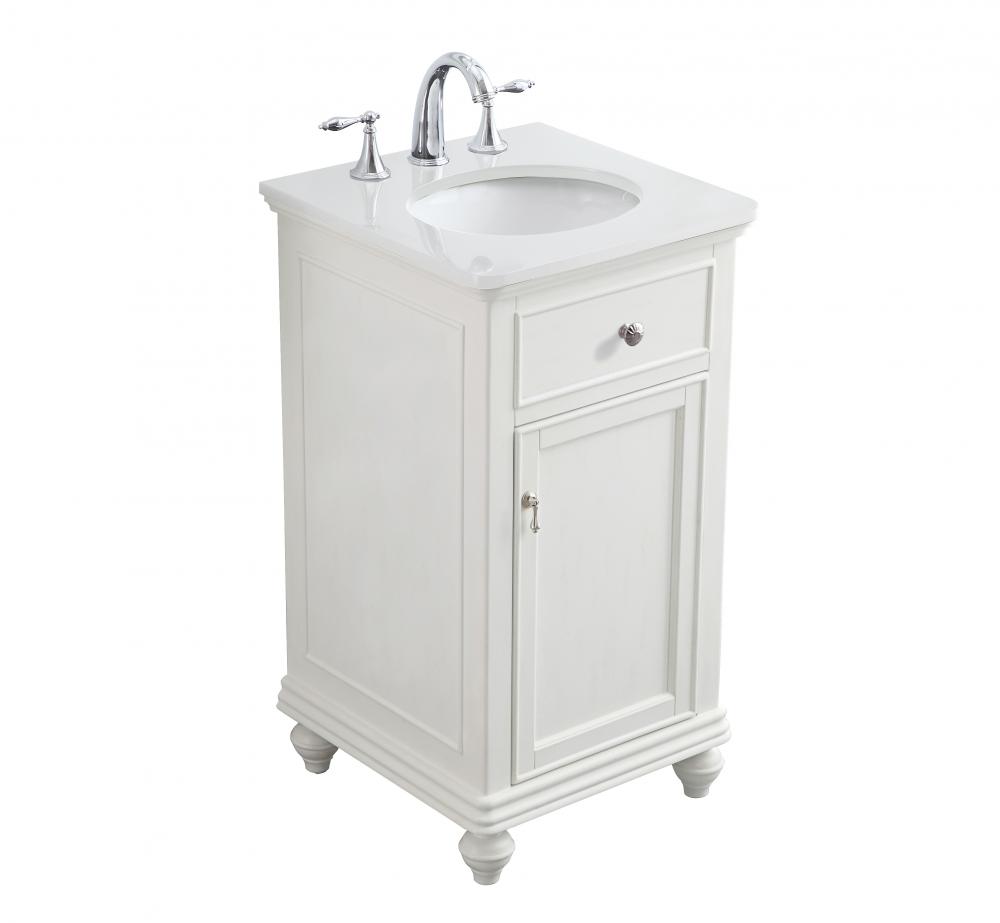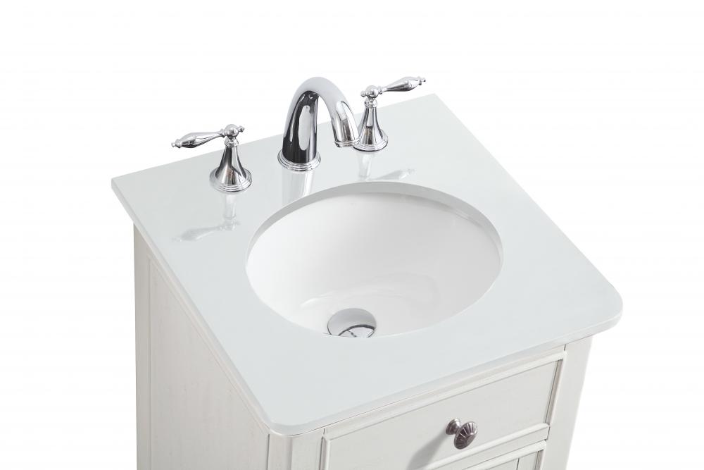 19 inch Single Bathroom vanity in antique white with ivory white engineered marble