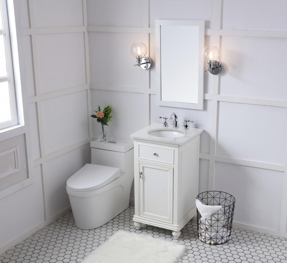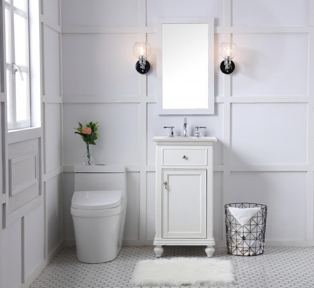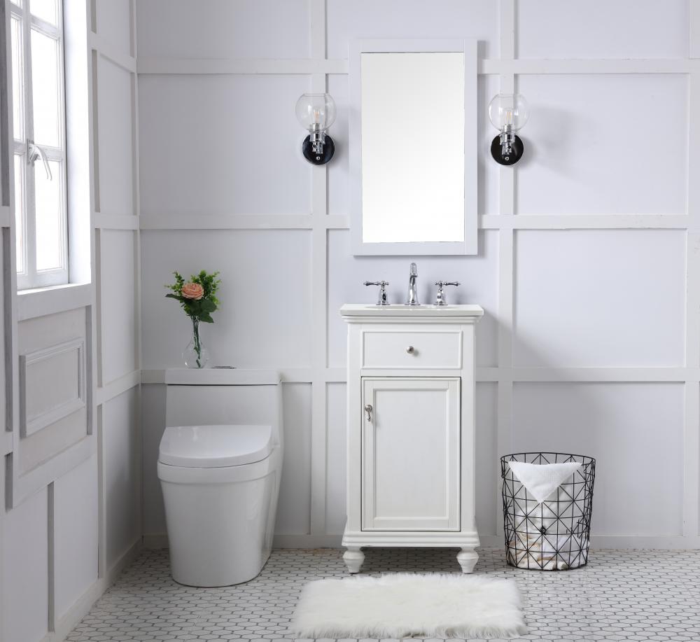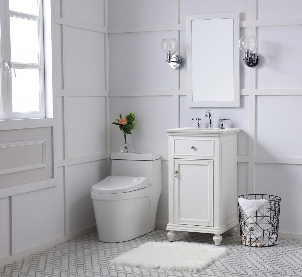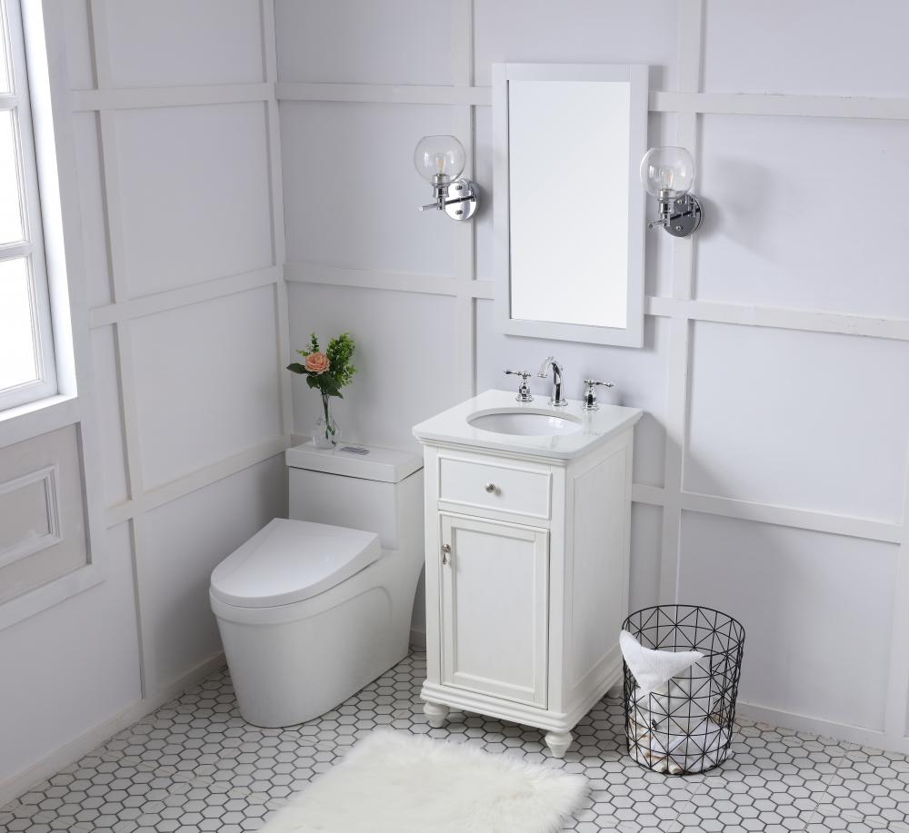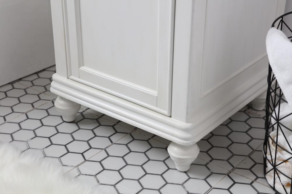 19 inch Single Bathroom vanity in antique white with ivory white engineered marble
