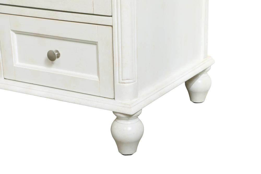 Distressed antique white finish with a luxurious carrara white marble countertop