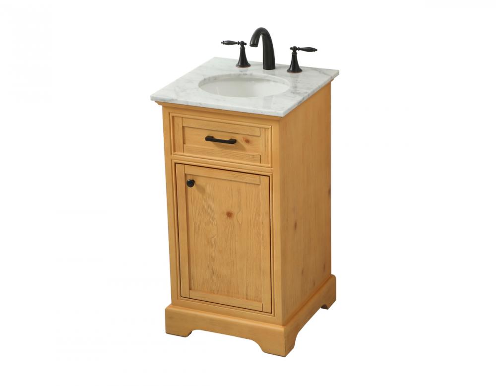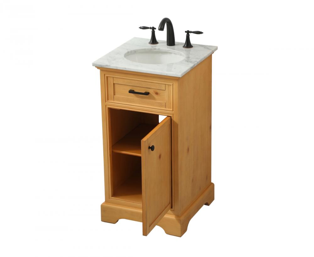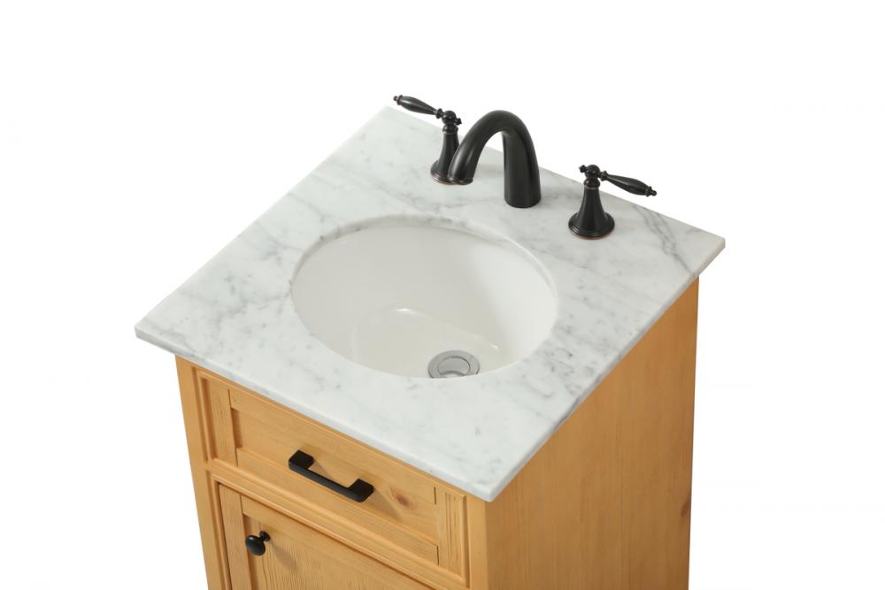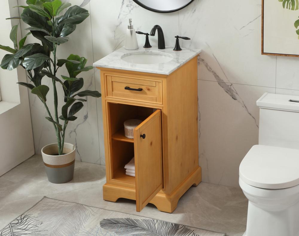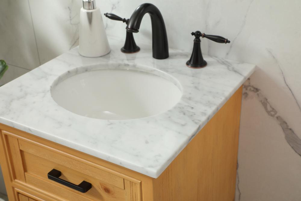 Comes with an undermount porcelain sink and a carrara white marble countertop