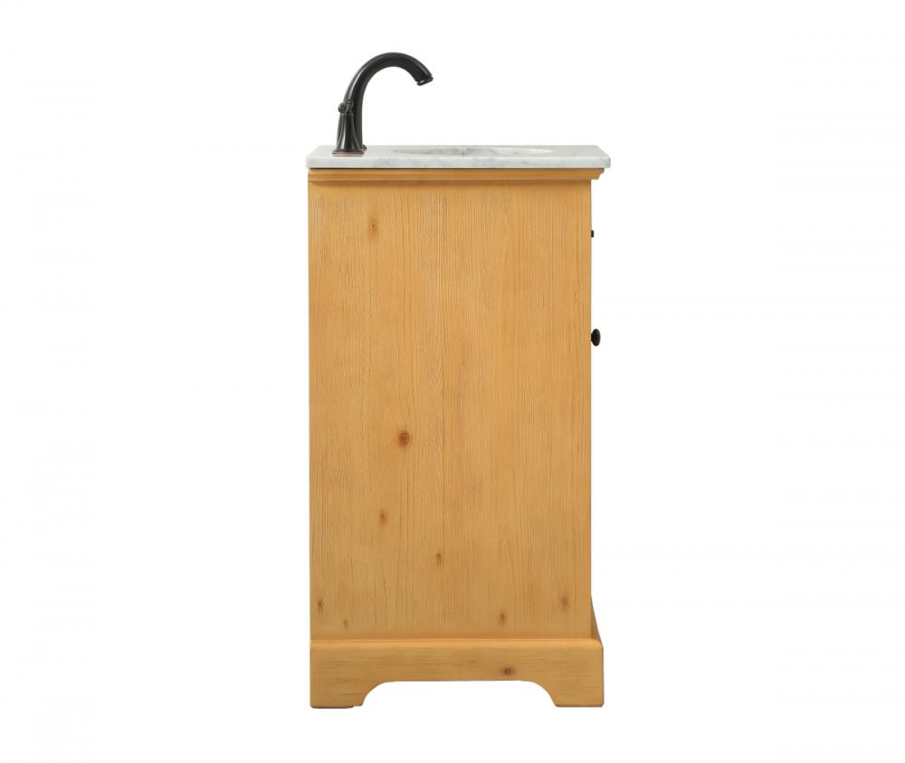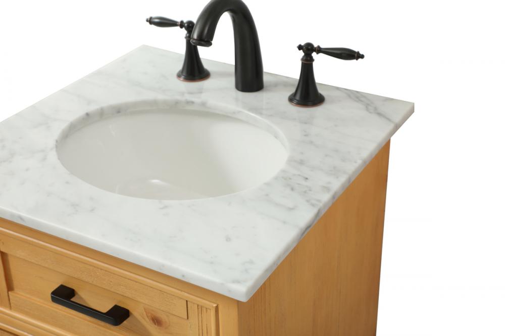 Clean lines and classic form can truly add a fresh look to your bathroom or powder room. This vanity, complemented by round hardware, will surely charm you with its confident style and subtle charisma. This vanity can store all of your bathroom toiletries, from extra towels to make up essentials. The vanity is crowned with carrara white marble and includes a porcelain undermount sink--adding both function and form that will truly amaze.