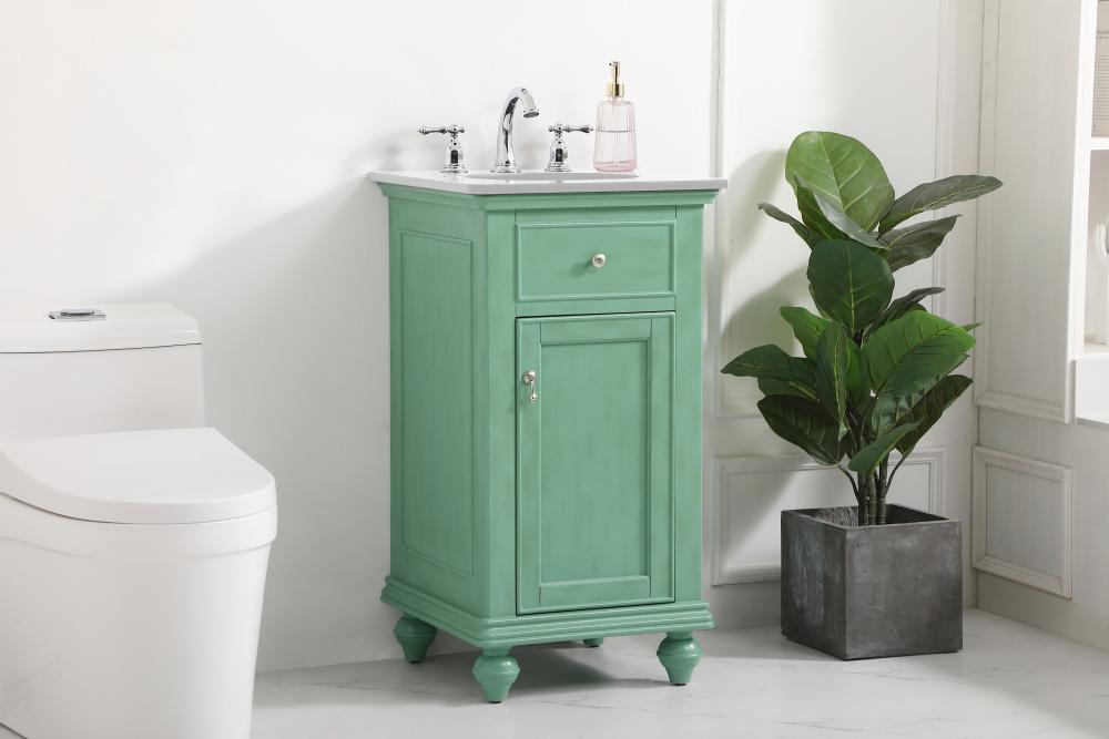 19 inch Single Bathroom vanity in vintage mint with ivory white engineered marble
