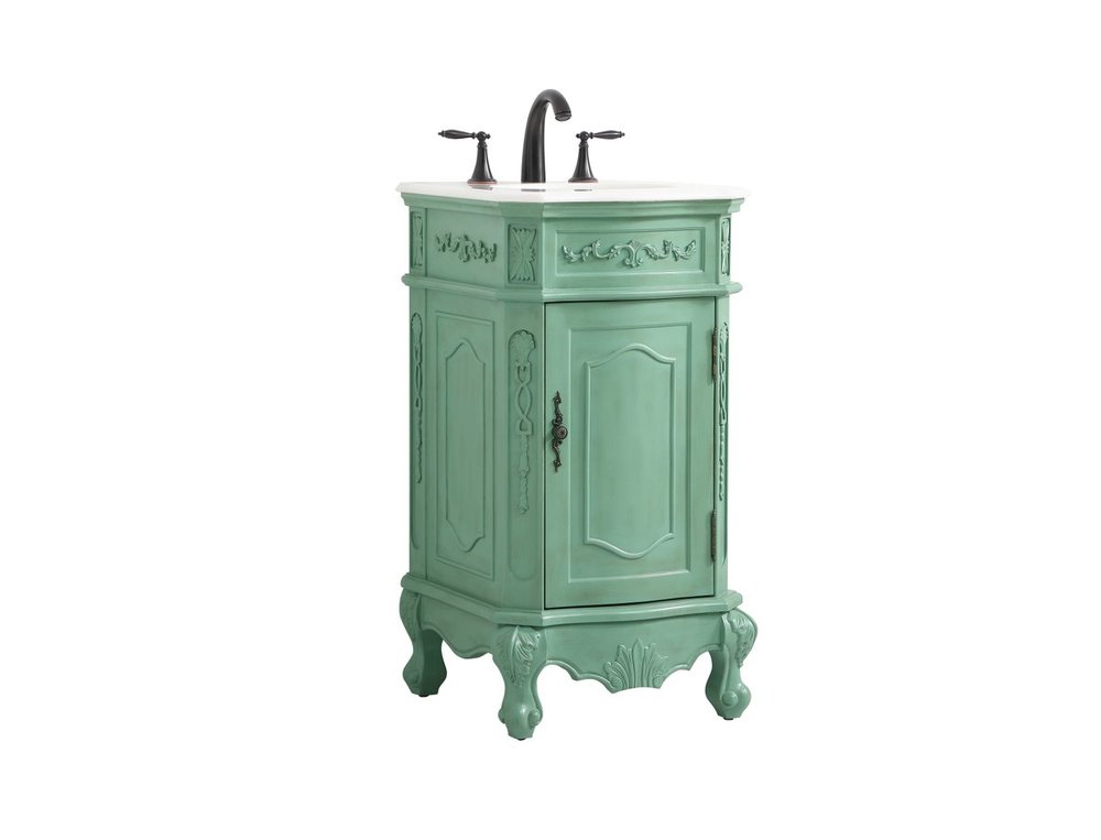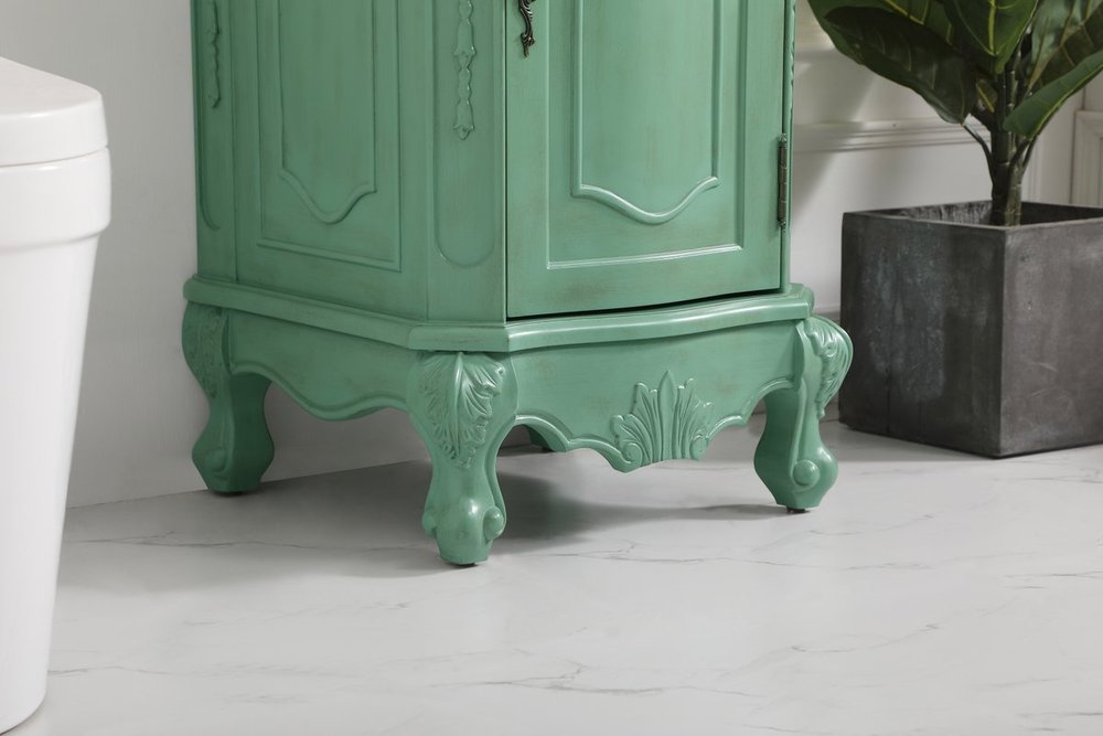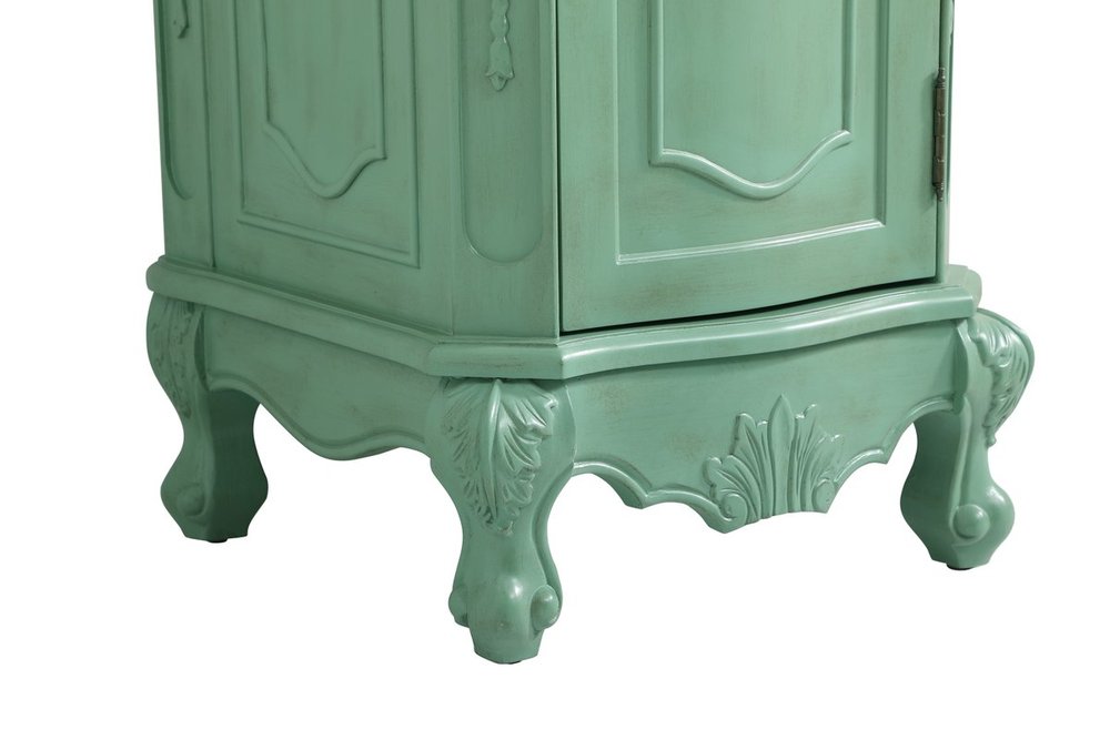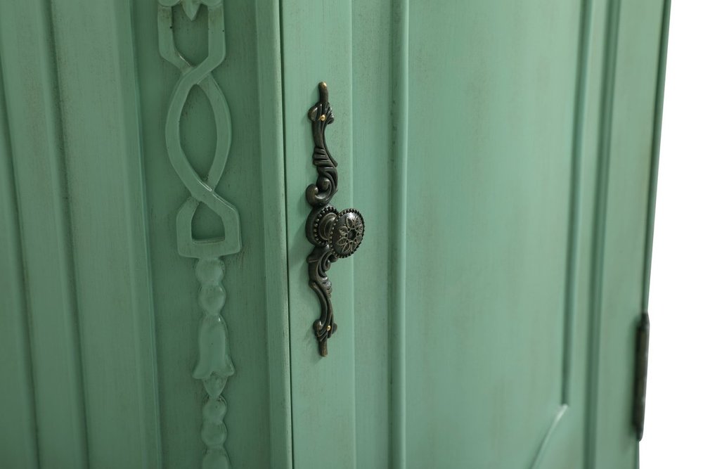 Hand painted in vintage mint finish with distress paint application