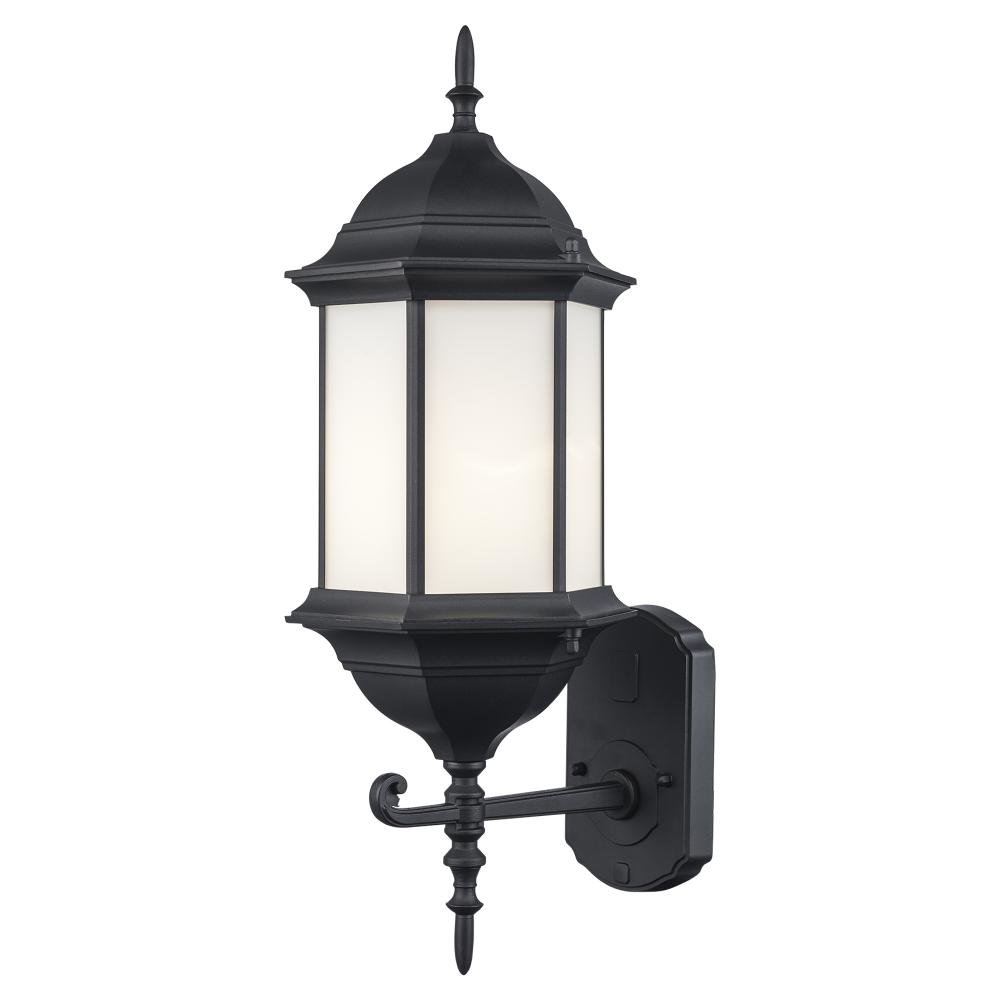 1LT-WALL LANTERN-LG-BK-WH FROS