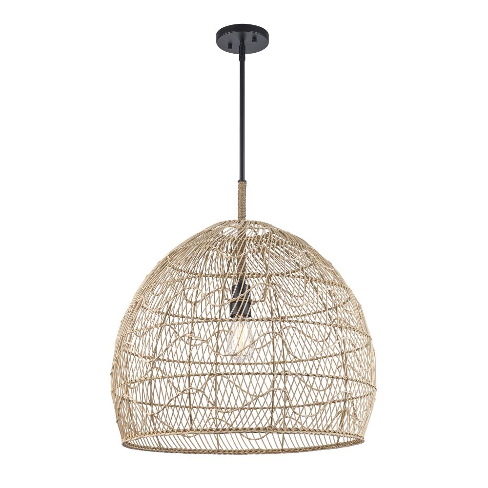 1LT PENDANT RATTAN WAVE 23"-BK