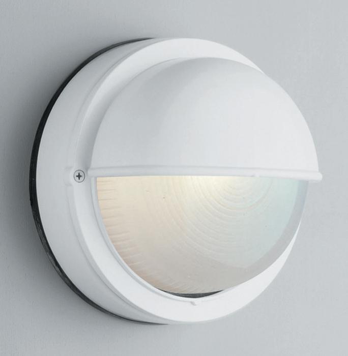 The Mesa II 8" Bulkhead is perfect for adding a warm glow to any outdoor area. The fixture provides a subtle accent to any home exterior and complements a variety of design themes. The timeless look and Traditional style of this round bulkhead lantern borrows accents from nautical themes. The Ribbed Frosted glass lens is partially covered by a durable rounded hood. The closed lens protects the bulb from outdoor elements.