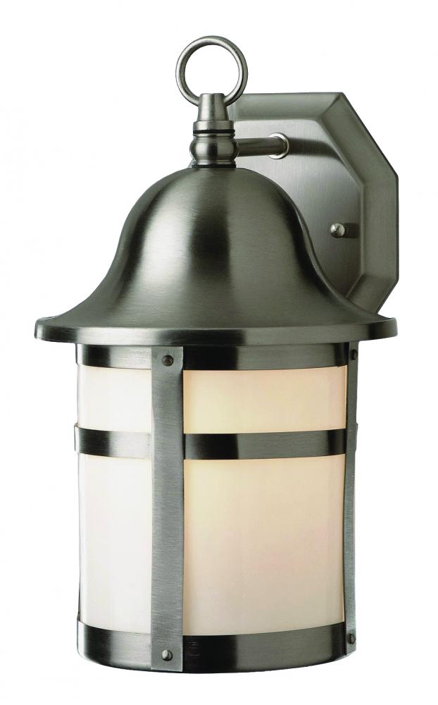 The Thomas 12.5" Wall Lantern showcases any outdoor living space with both style and functionality. The durable craftsmanship is inspired by Transitional design themes and maintains a distinctive look as it provides accent and area lighting. The round glass shade is open at the bottom for directional light below and easy access to change the bulb. The White Glass shade is banded with a metal frame. The Thomas Collection features an ornamental back plate for wall mount, a bell shape metal shade and decorative ring accent on top for the perfect finishing touch!