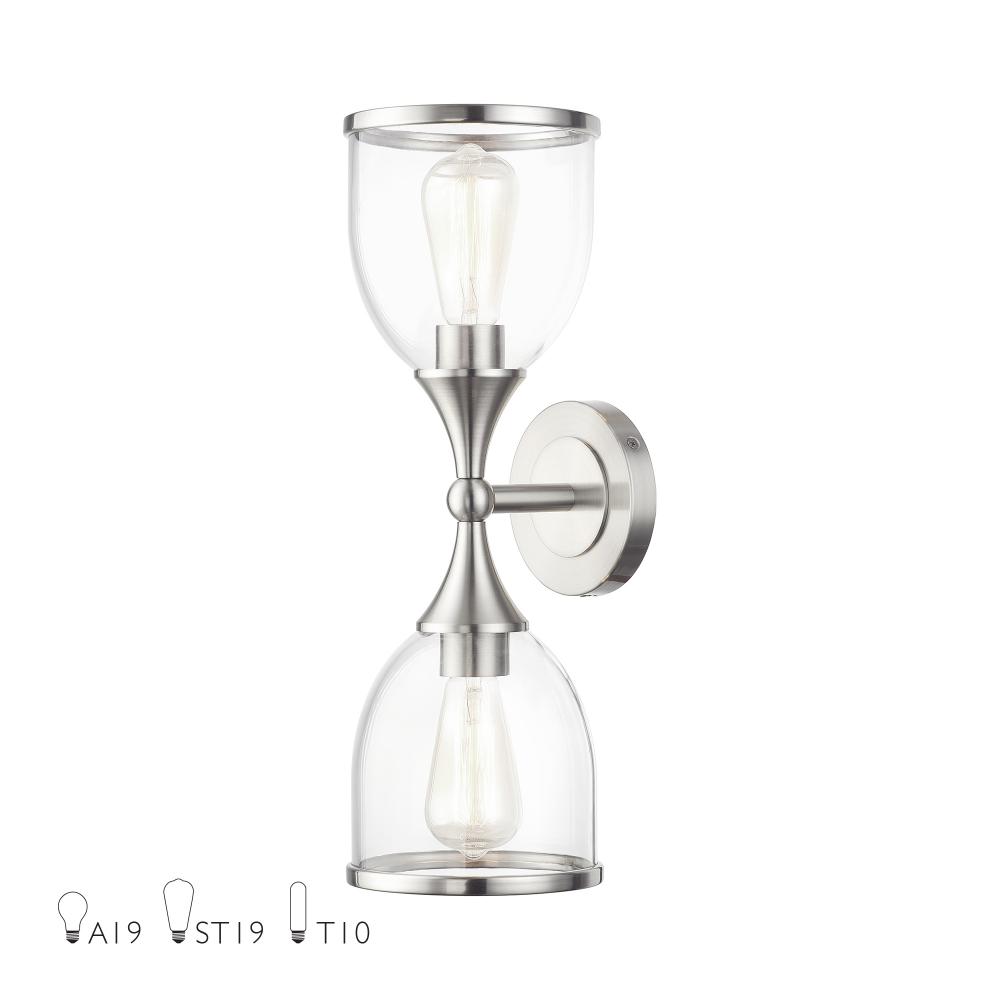 2 Light Brushed Nickel Vanity Sconce with Mouth Blown Clear Glass