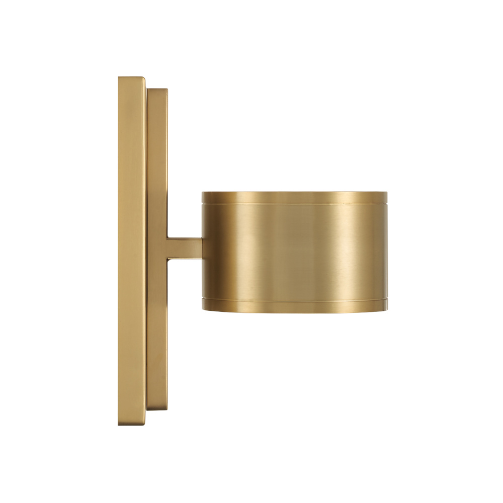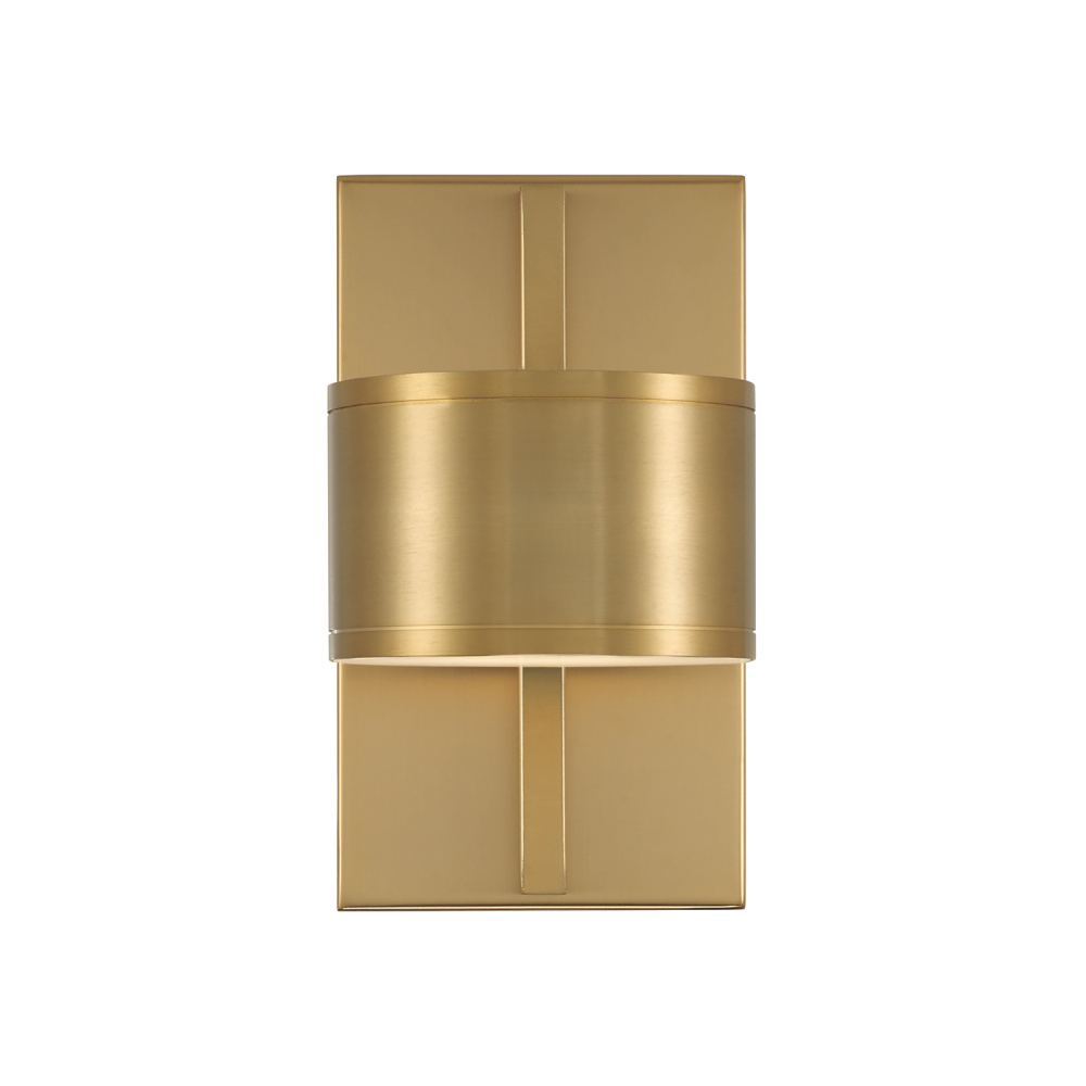 DETAILS: With a warm Aged Brass finish and fine line details, the concise cylindrical form houses integrated LED technology in both up and down light, creating captivating contemporary beauty complete with an extended backplate.