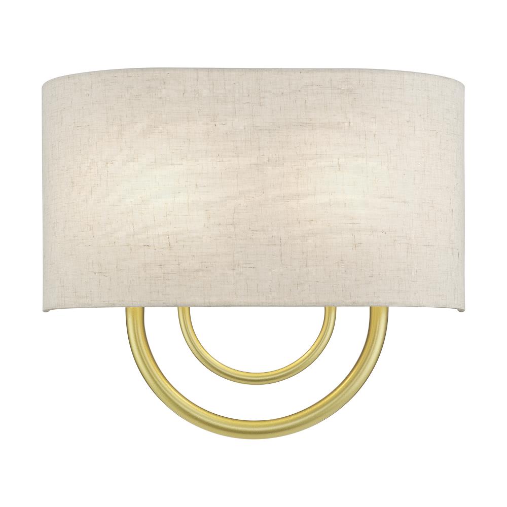 2 Light Soft Gold ADA Sconce with Hand Crafted Oatmeal Fabric Shade with White Fabric Inside